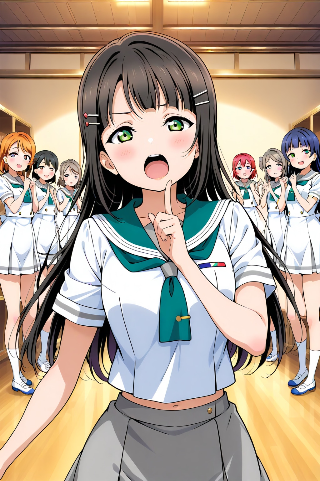 真面目なお説教なロングヘアのクラス委員長ちゃん的なのを2枚生成して①おでこ露出②姫カットなで微妙な感じ❣️