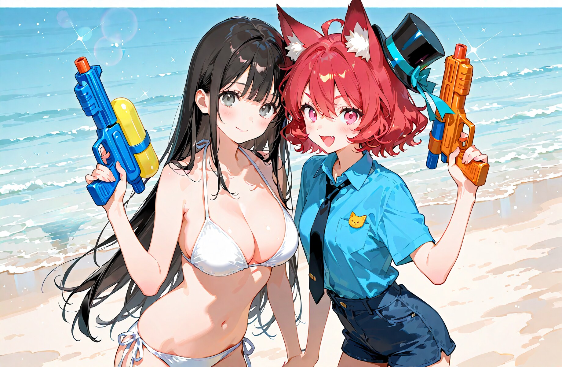 ・服装はふつうに white bikini で watergun の水鉄砲を持ってもらいました。