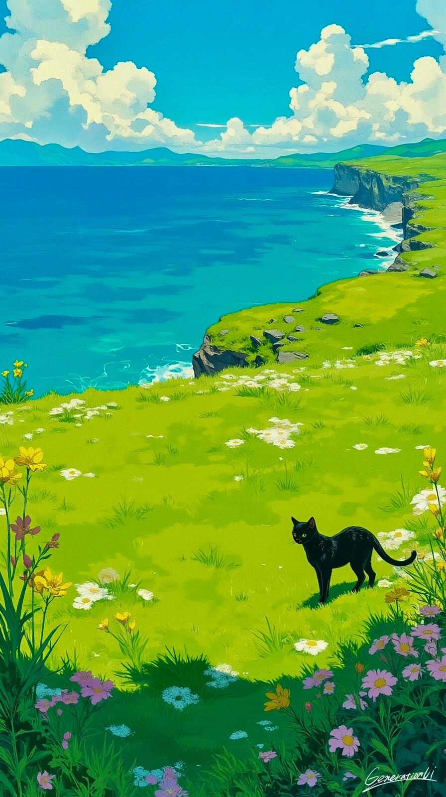 崖の上の小さな来訪者/スマホ壁紙アーカイブ