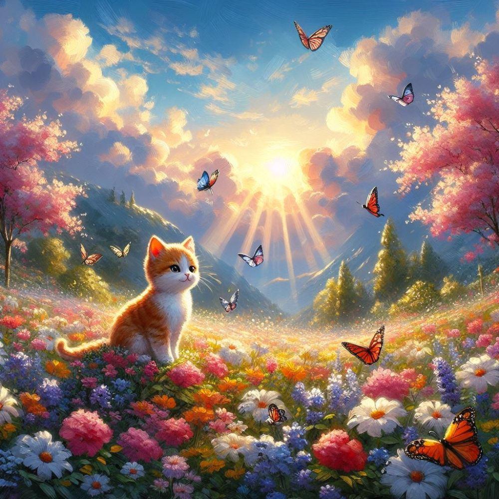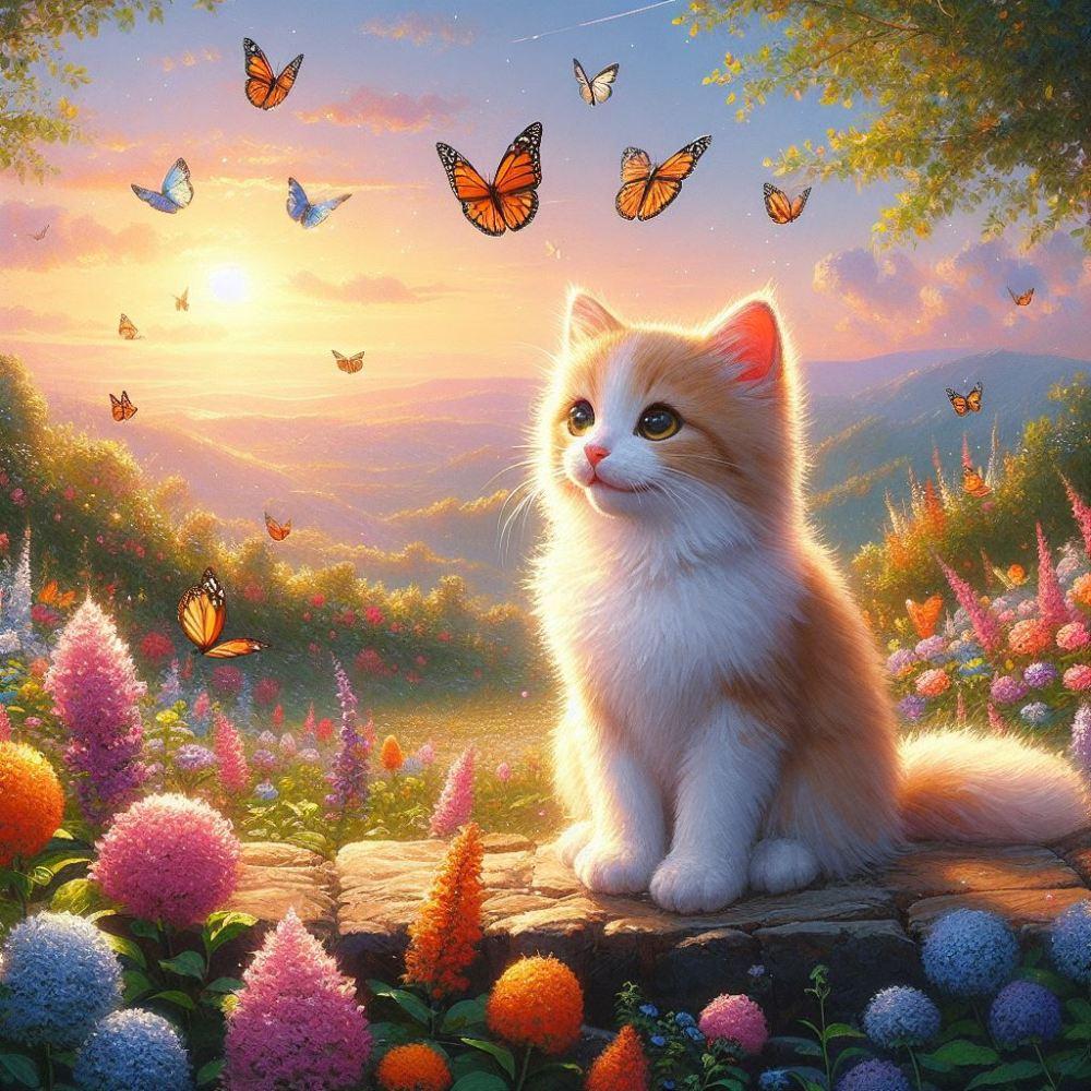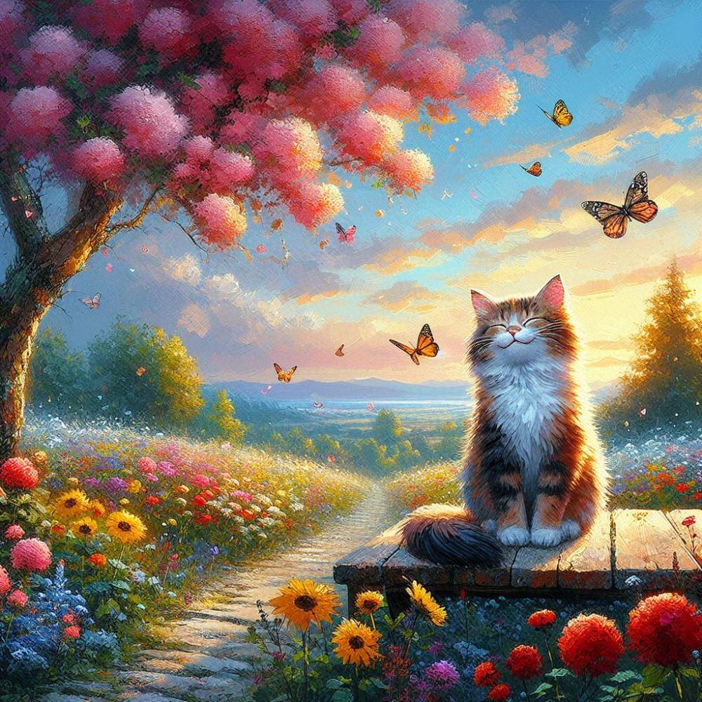 アクリル風 #蝶 花畑猫