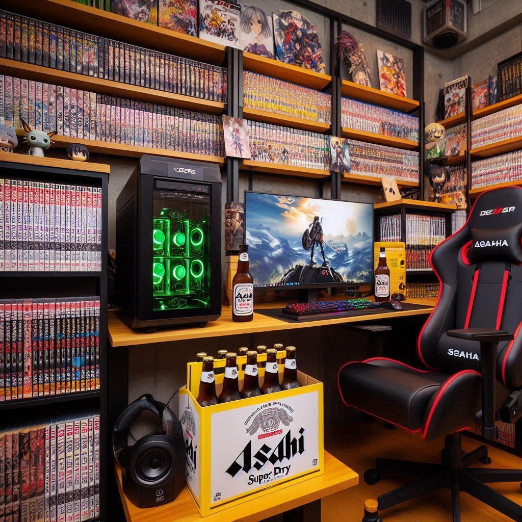実際はL字デスクにモニター2つ、フィギュア大量。デスク脇にワインセラーがあって、メタルラックにお気に入りの漫画やCDが飾ってあるオタク部屋に住んでます。コンセプトは【2000年代初頭のオタク部屋】