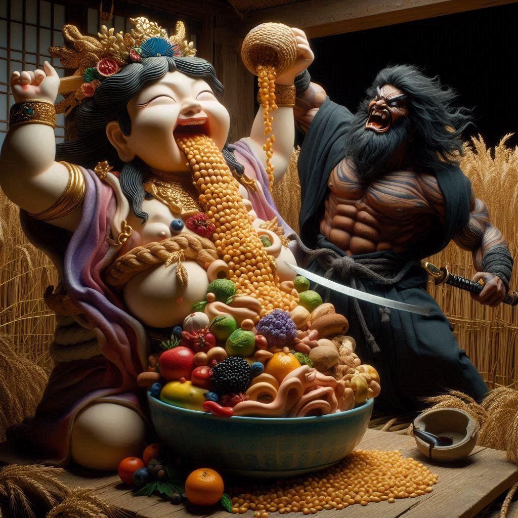スサノオさまを料理でもてなすオオゲツヒメ