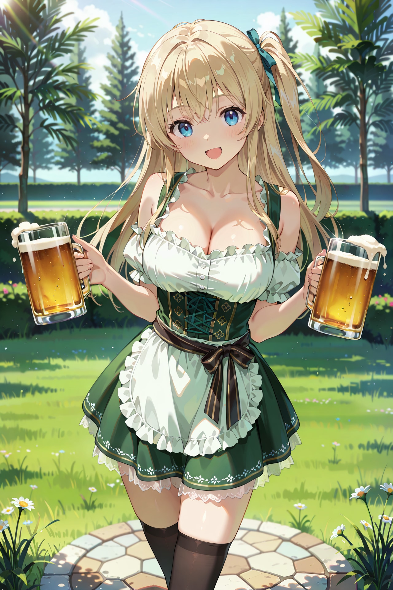 ビアガーデンとかオクトーバーフェストの店員さんをイメージして、小道具としてビールも持たせています。
