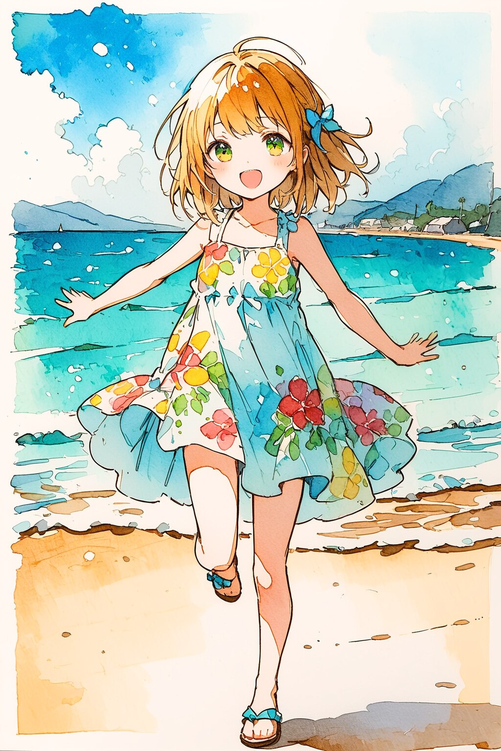 公式タブの 「水彩画+夏の思い出+走る人+よそ見」のアレンジです。
