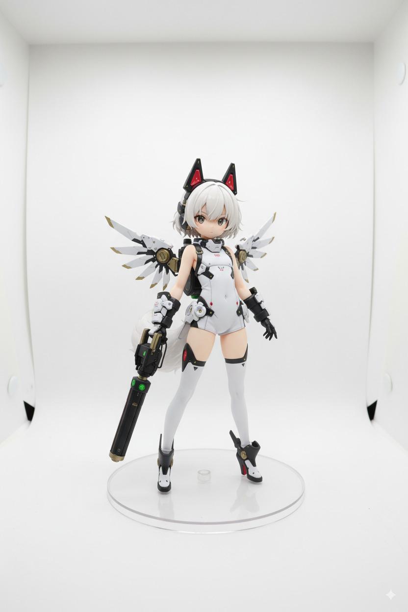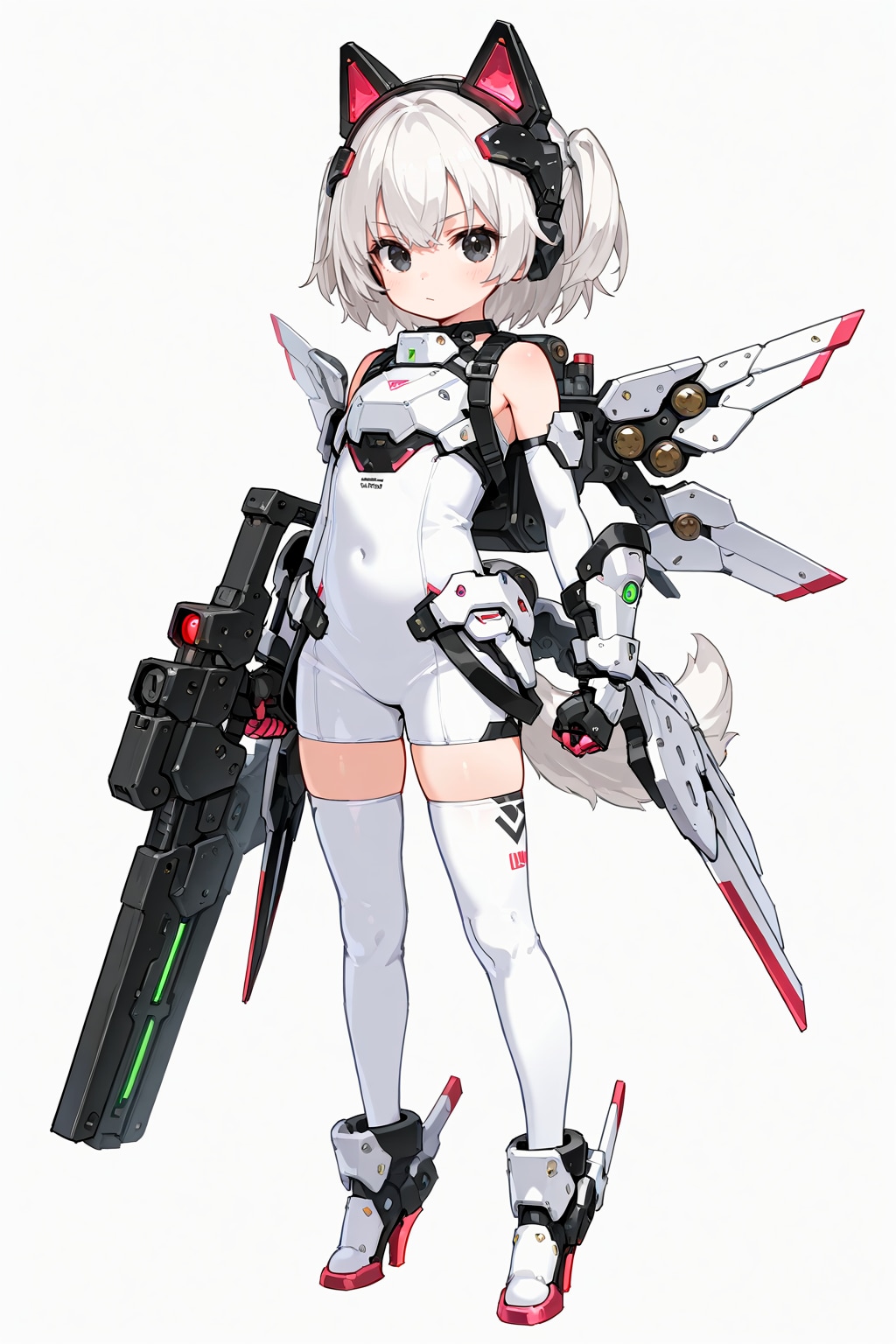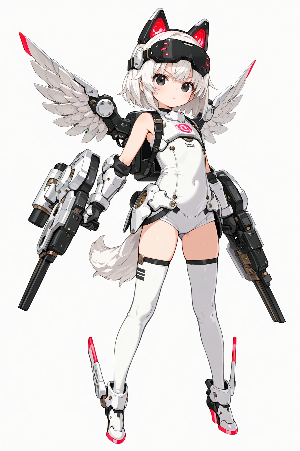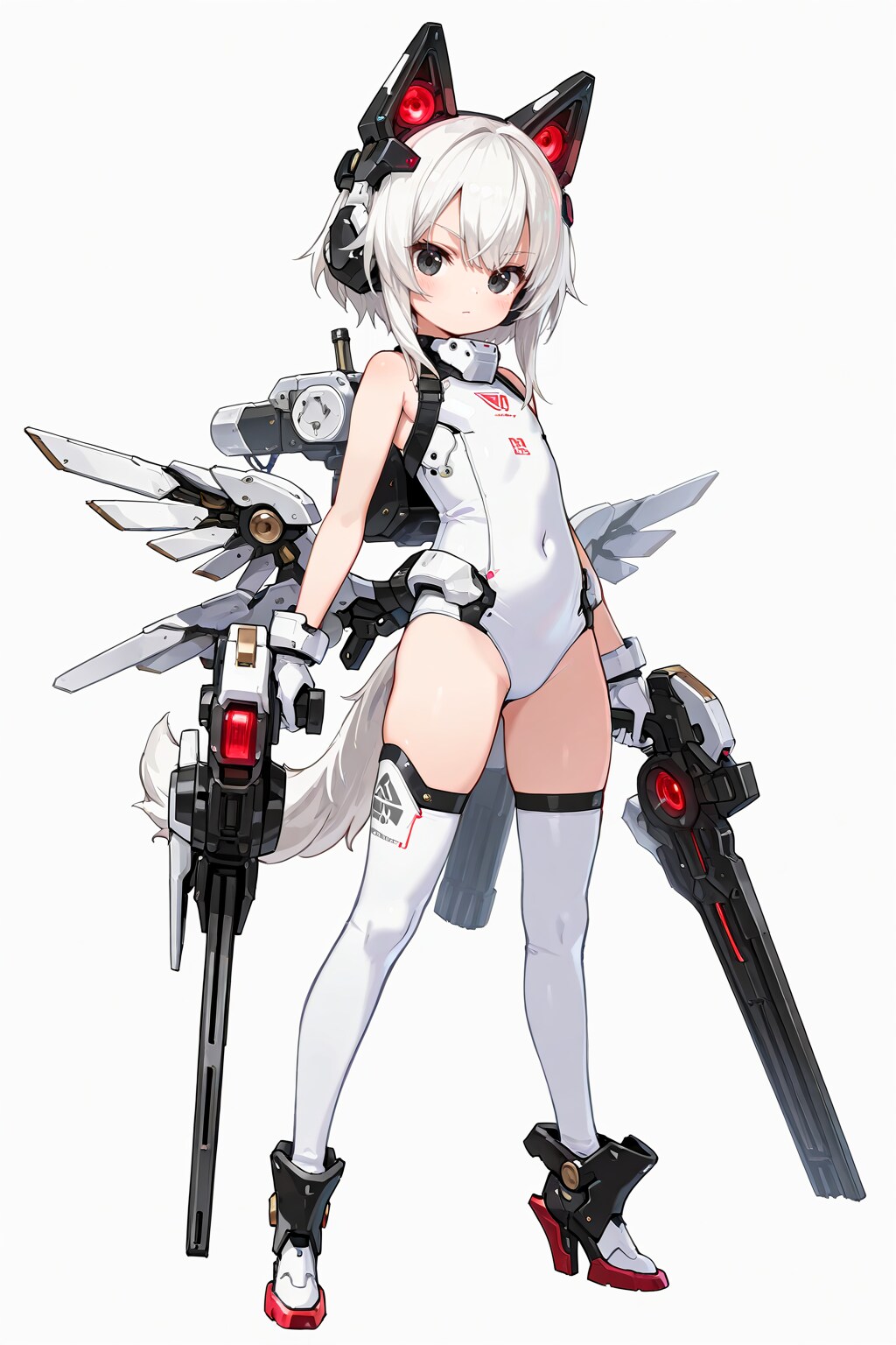 white mechanical body armor,white bodysuit,mechanical gauntlet,mechanical high_heels boots,white outfit,head gear