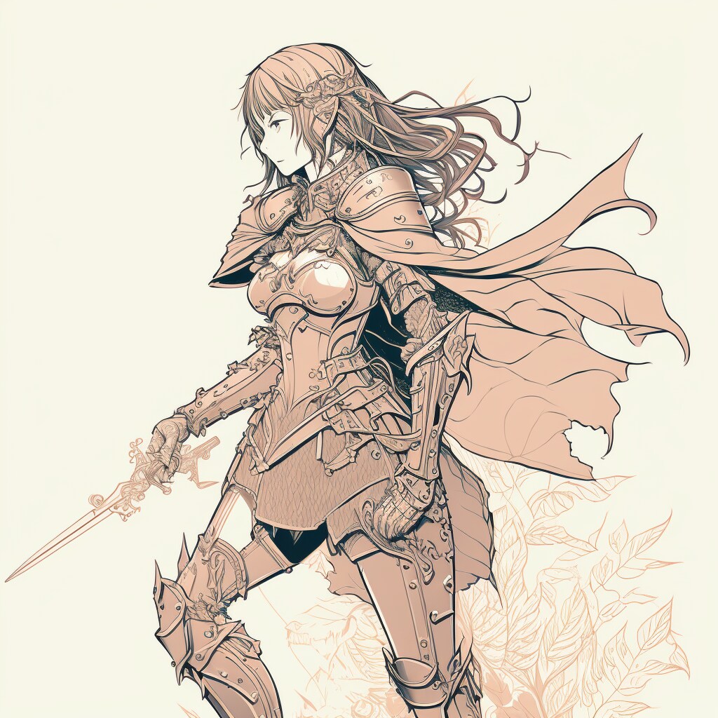 片手に剣を持ち遠くの敵陣を見る美しき女騎士