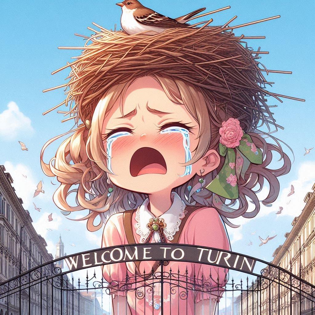 【謎画像】トリノで鳥の巣を頭に作られた女の子