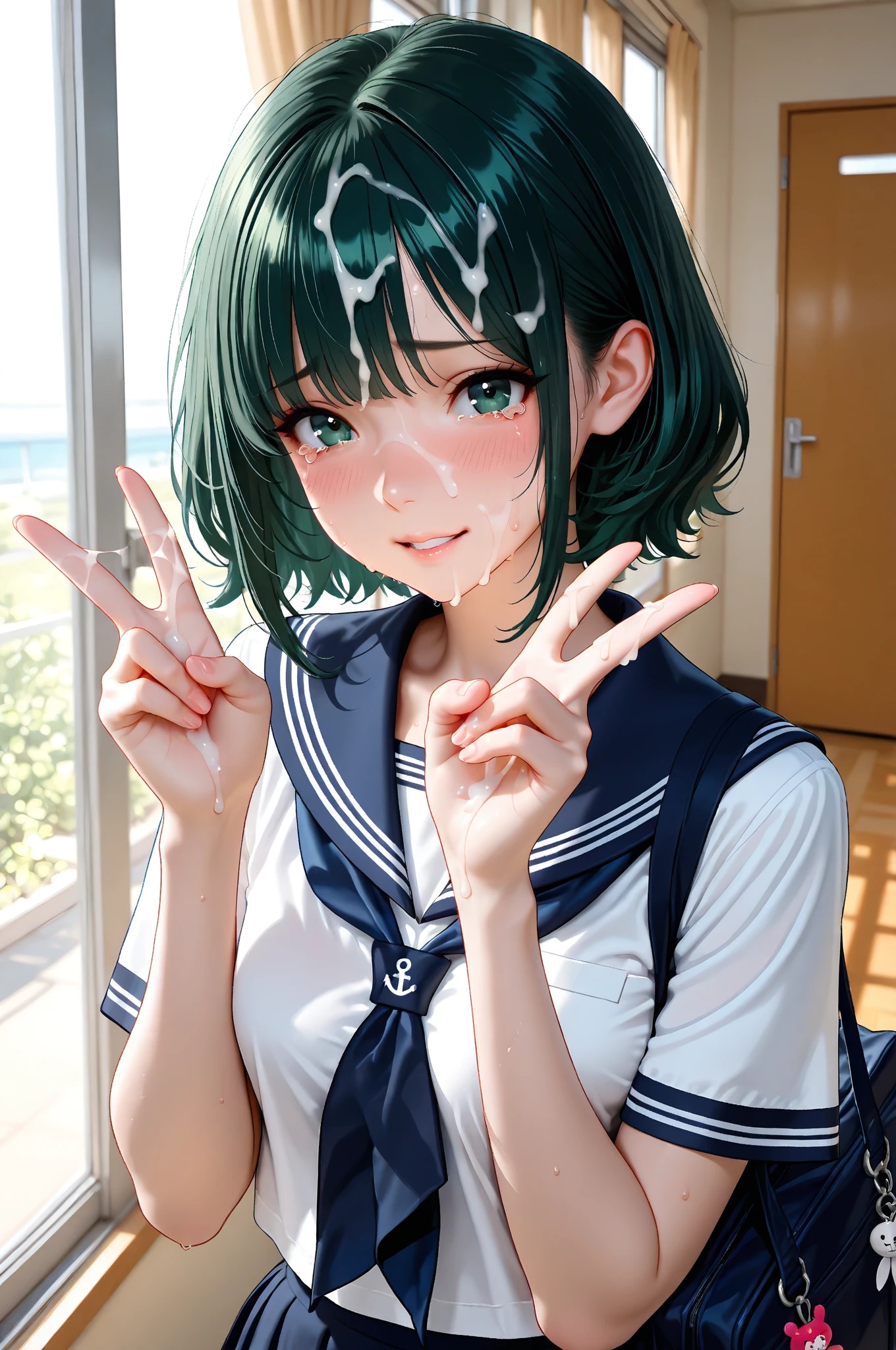 と驚いた表情で言う彼女の胸に全てを出し終えた。唾液と白濁液が混ざりあうモノを柚羽の顔の前に持っていくと、彼女は口を開けてパクッと咥え込んだ後に綺麗にしてくれた。そして全て舐め終わった後も名残惜しそうに俺のモノをじっと見つめていたので思わずもう一度突っ込んでやりたくなったがなんとか抑え込み、服を着せてあげた後に帰る準備を始めることにした。