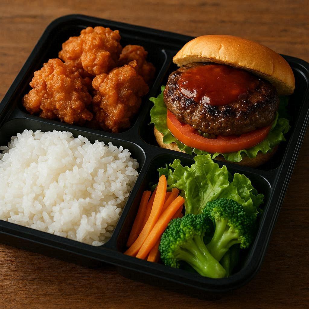 作品はハンバーガーのところが実際はハンバーグです。