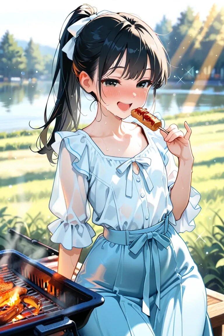 顔つきは生成毎にブレるので気持ちだけですが、ポニテにリボンを付けて見た目を少し若くしてみました😁