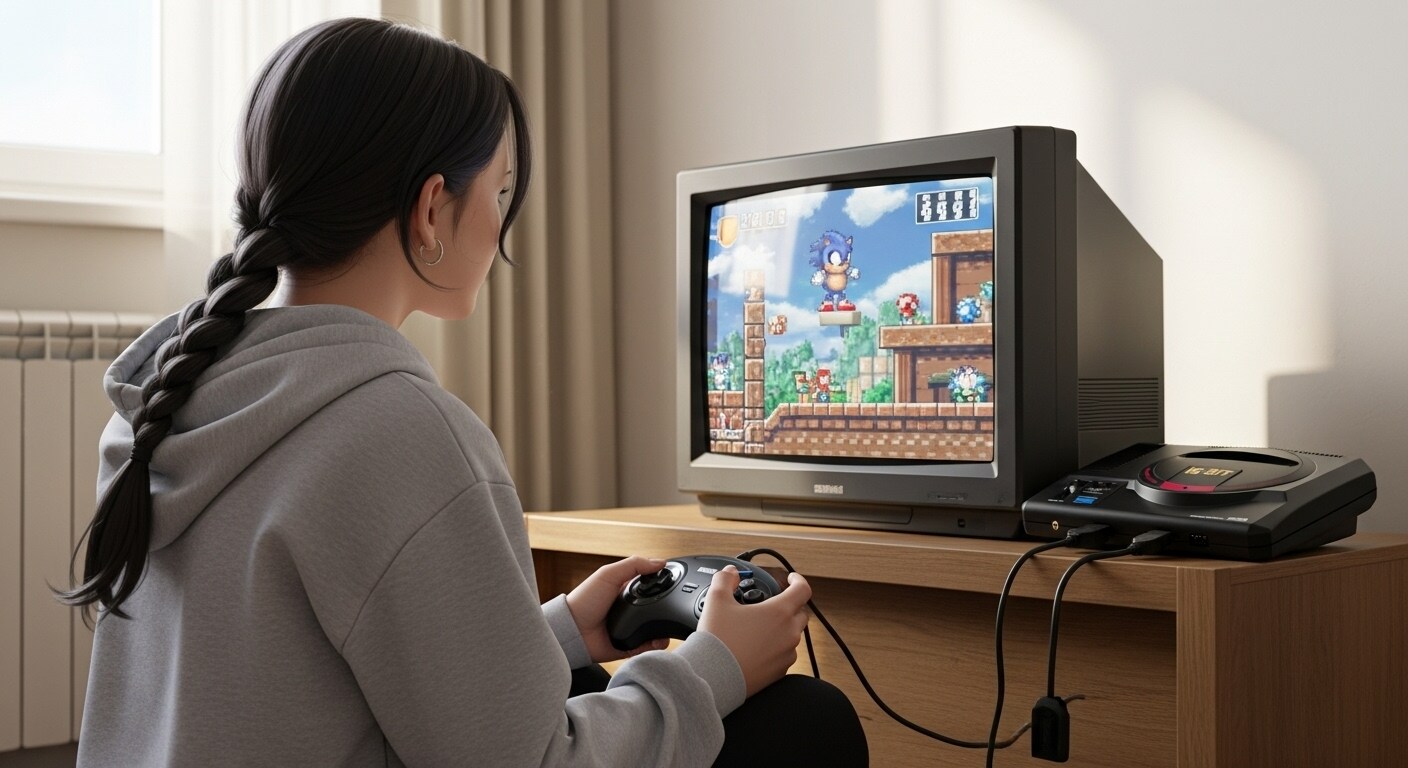 さて、気を取り直してプロンプトコーナーです。数日ぶりのWhisk。困った時のWhiskです。毎度毎度のパターンで生成しました。クリエイティブ・コモンズ許諾のMega Driveの写真と出演者をNova 3DCG XLで用意して合体させてます。