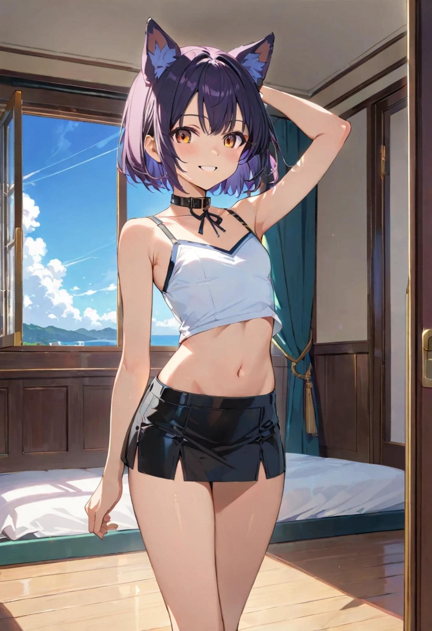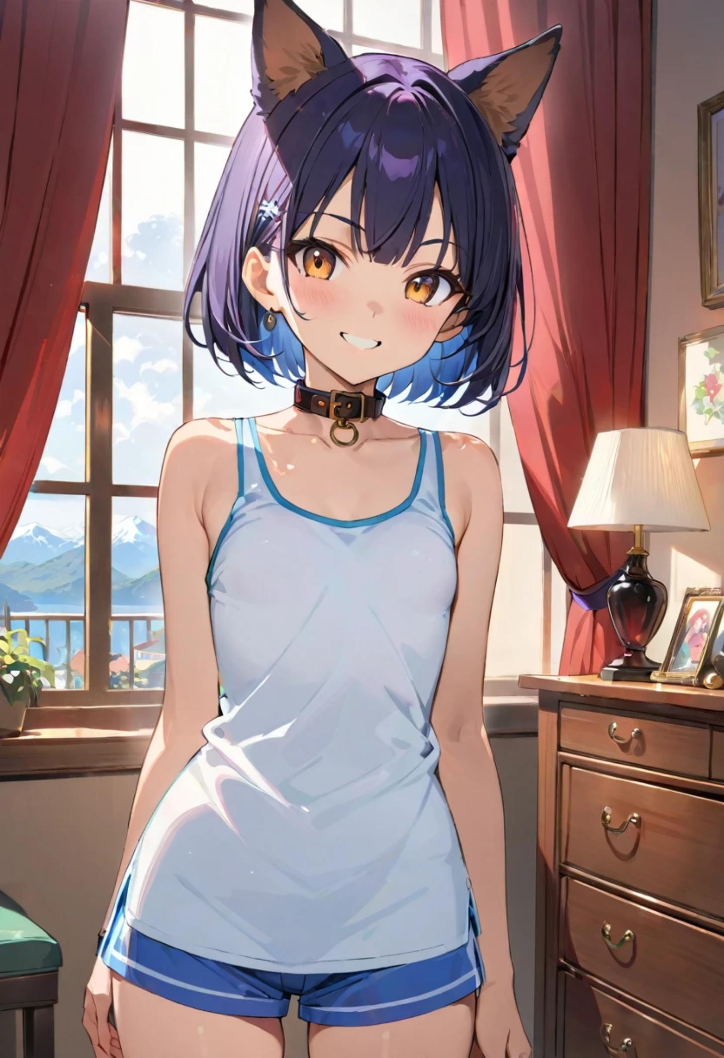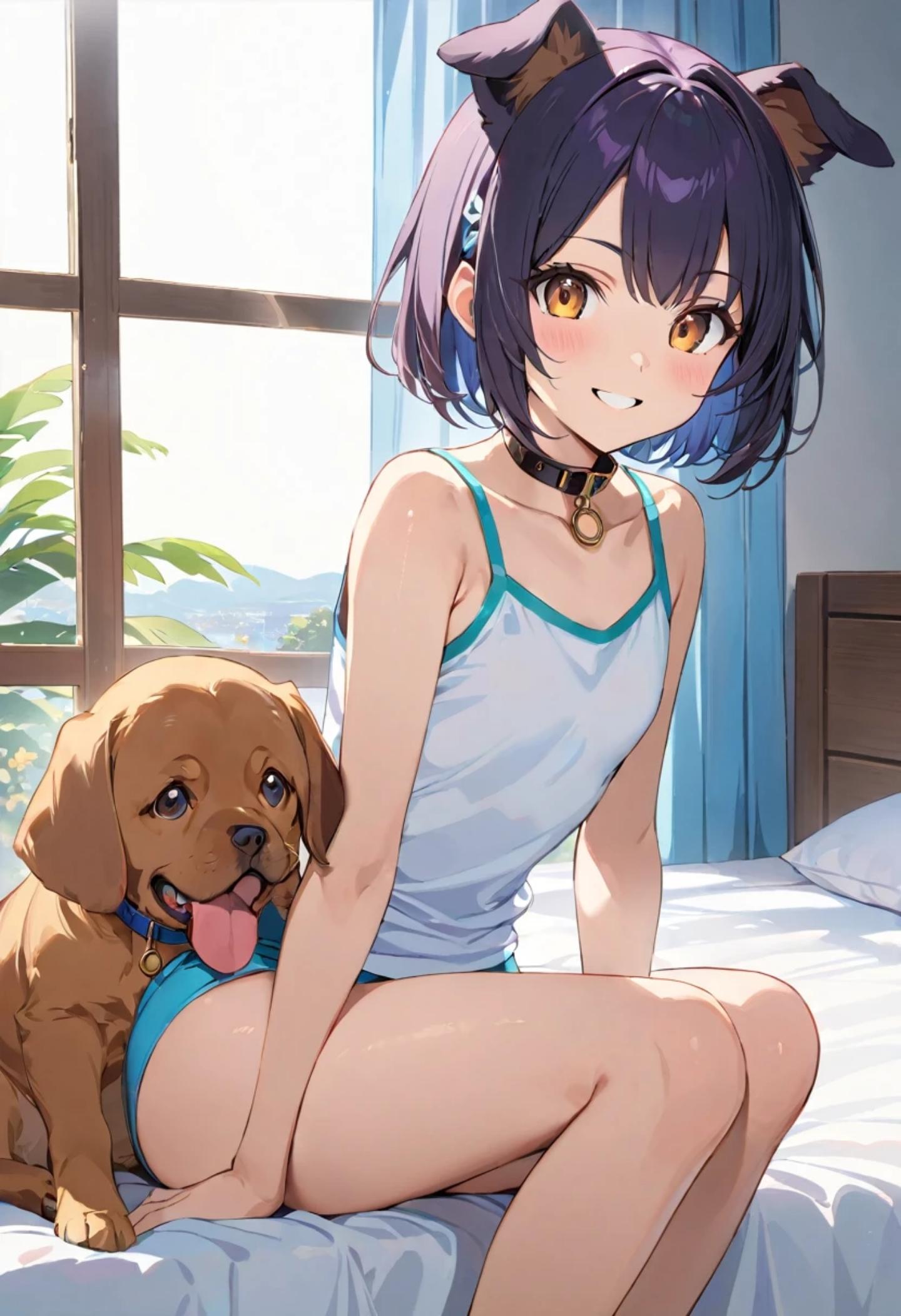 「ご主人が言うなら、あずき、このスースー我慢する!それに、おまたには毛毛が生えてるから、犬の時みたいで楽しい!」