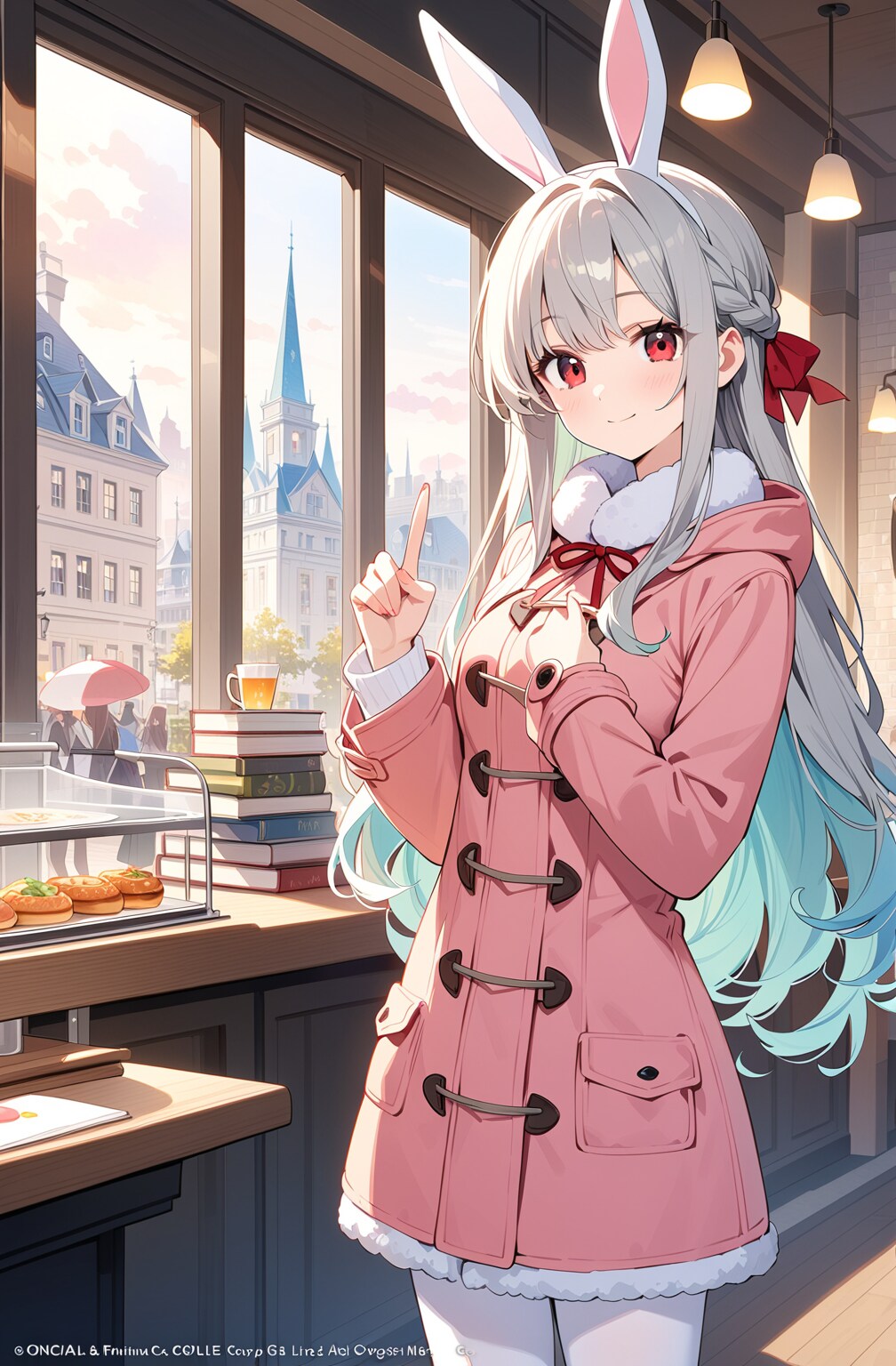 AIイラスト内世界で電子書籍端末がどれぐらい流通しているのか謎ですが、たぶんエリアーヌは物理の紙の本で読む派で、アンティークな喫茶店で紅茶を嗜みながら読んだりしているのではないでしょうか...