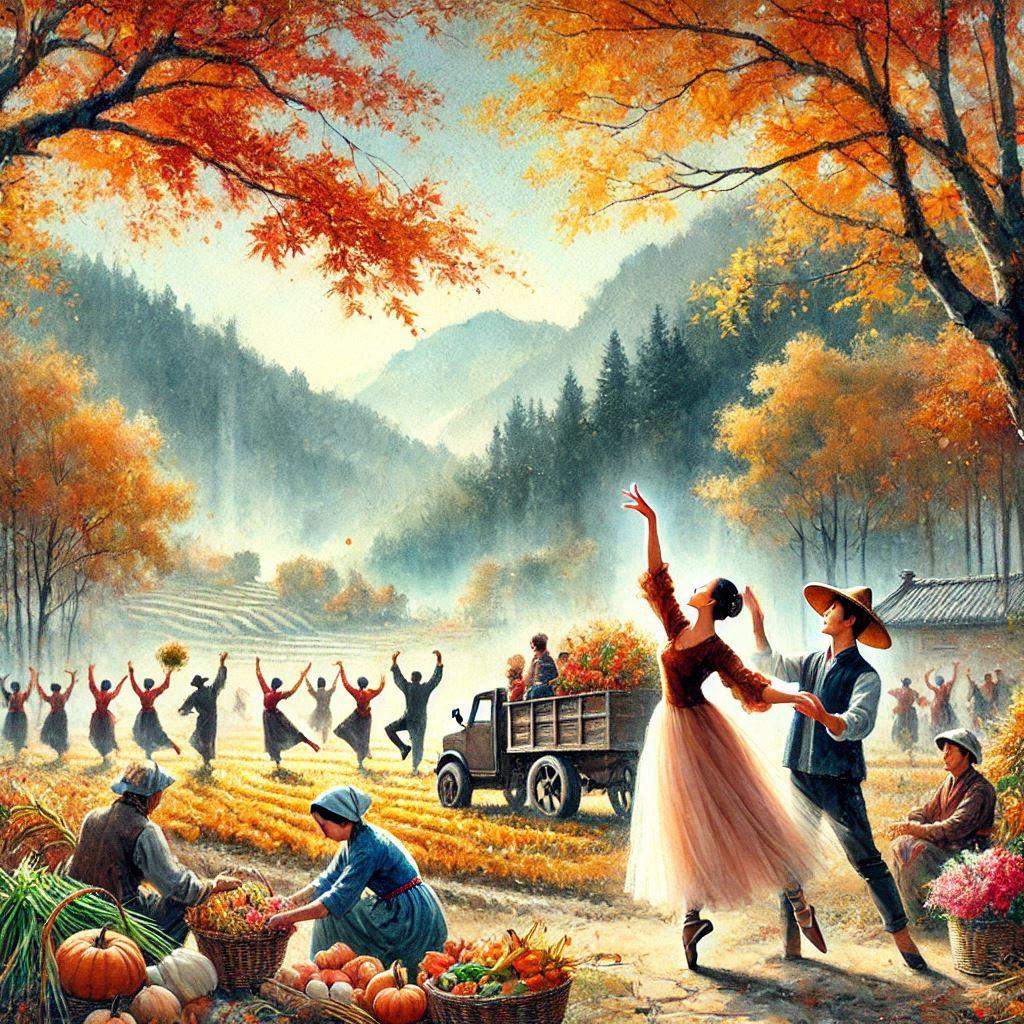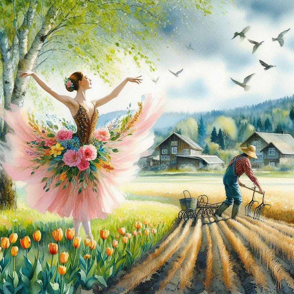 12:春が訪れ、農民たちが畑に出てくる。花の精が舞い降りる