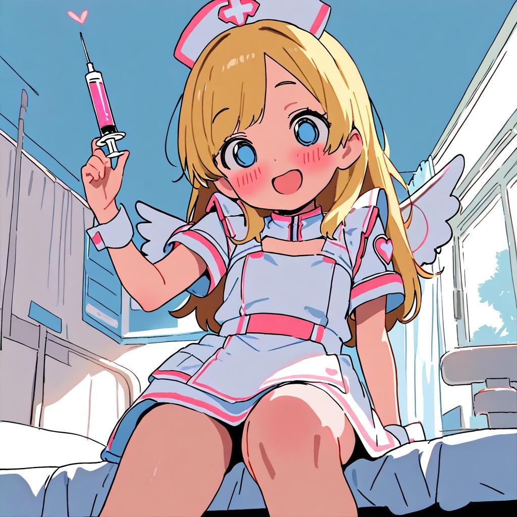 金髪のナースさんは、ニコニコしながら注射器をプスッと構えとる。