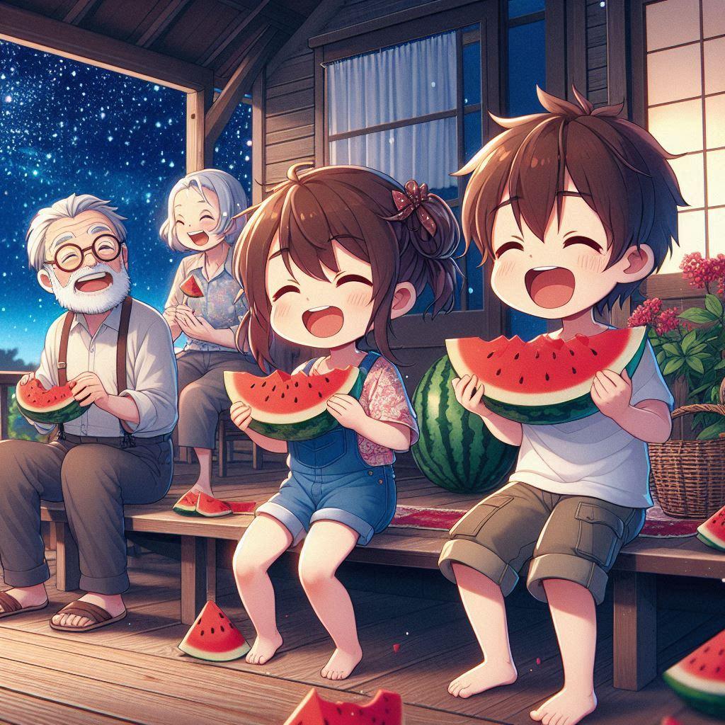 となりの男の子がくれたスイカを夜まで川の水で冷やして、