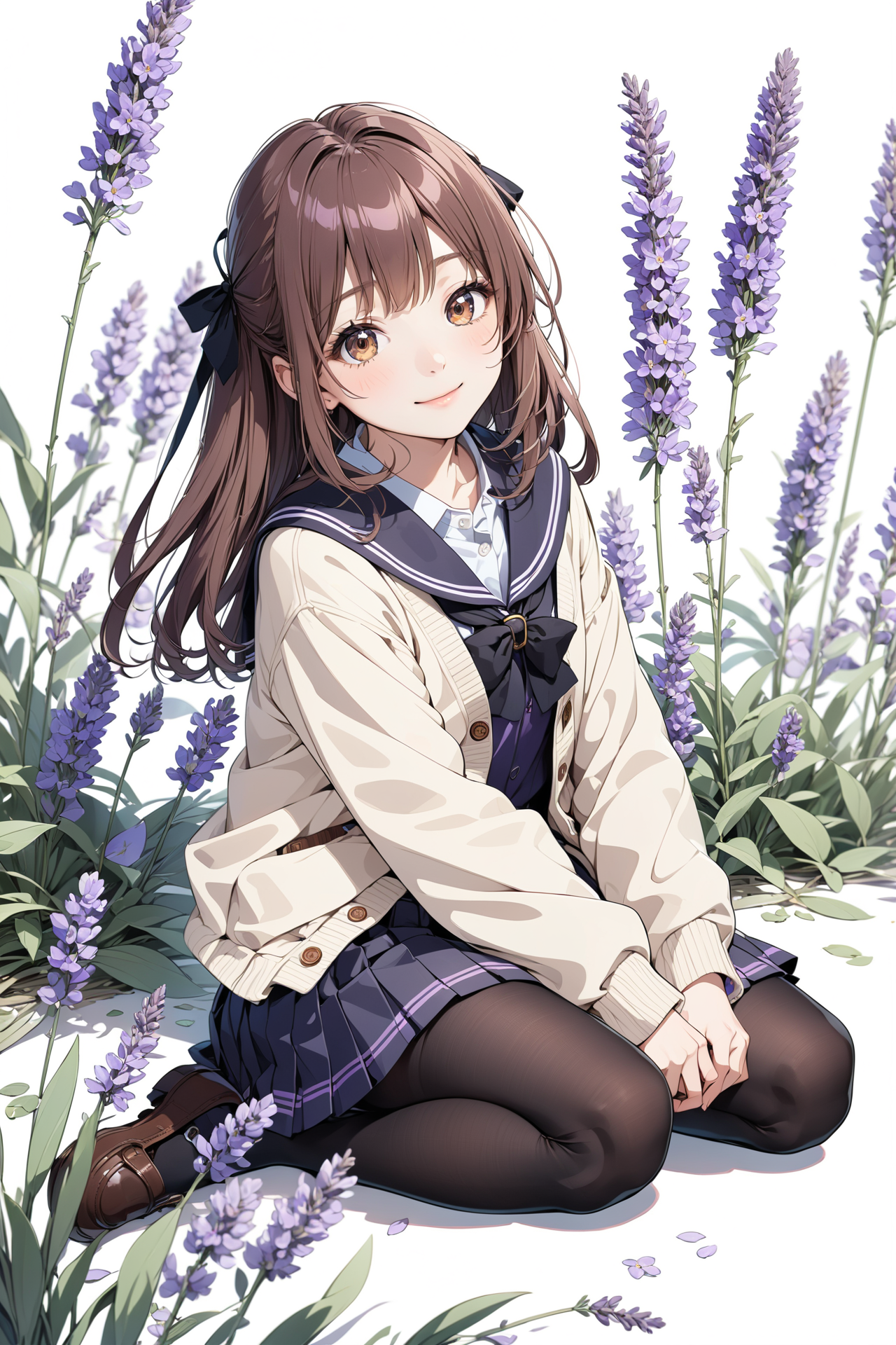 このシリーズ、本来は色々な学生服と色々な花を組み合わせてみようというものですが、今のところカーディガンと黒タイツの組み合わせしか作っていません。