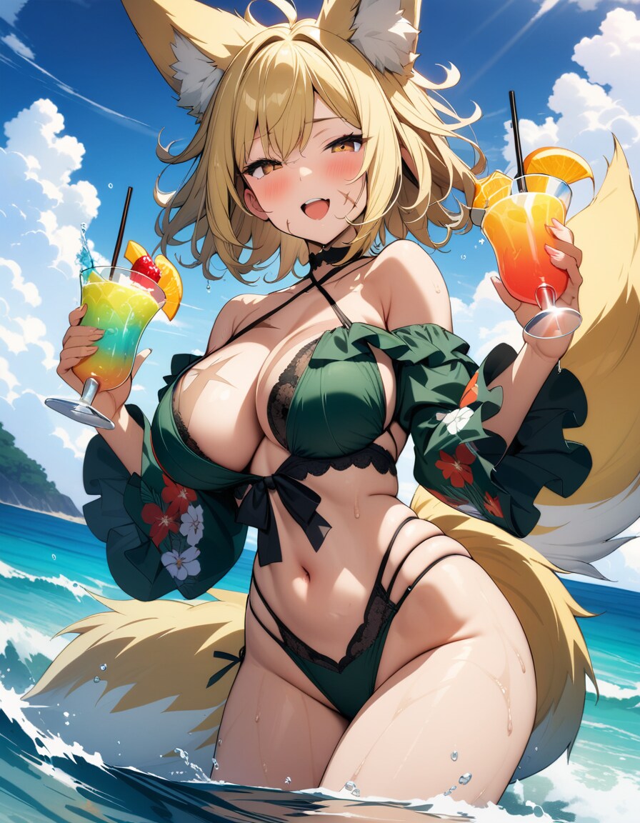 シチュエーション想定は↑とほぼ同じなのですが、ちょっとおっぱいが零れそう、下の切れ込みが強め?とかあとグラス二つ持っちゃったなあと惜しかったりしたものをR-15別枠投稿としました〜。
