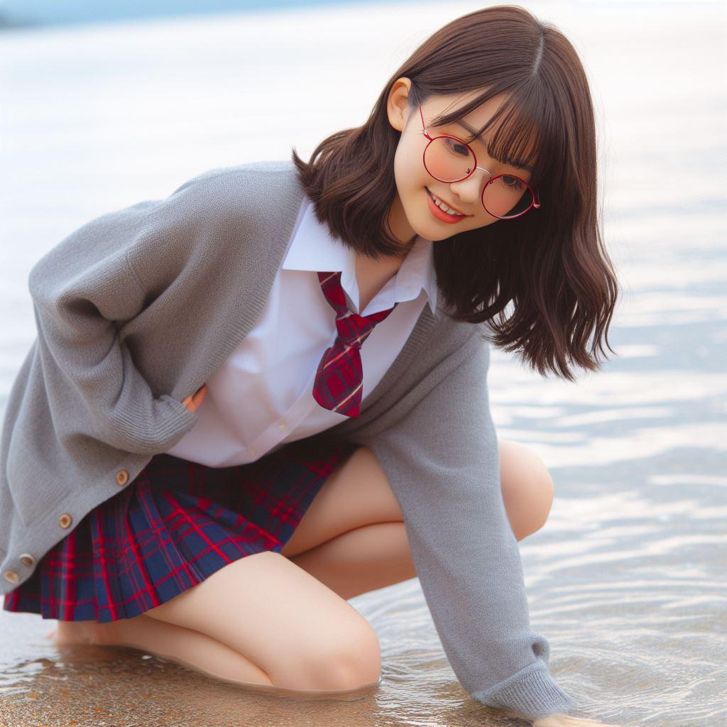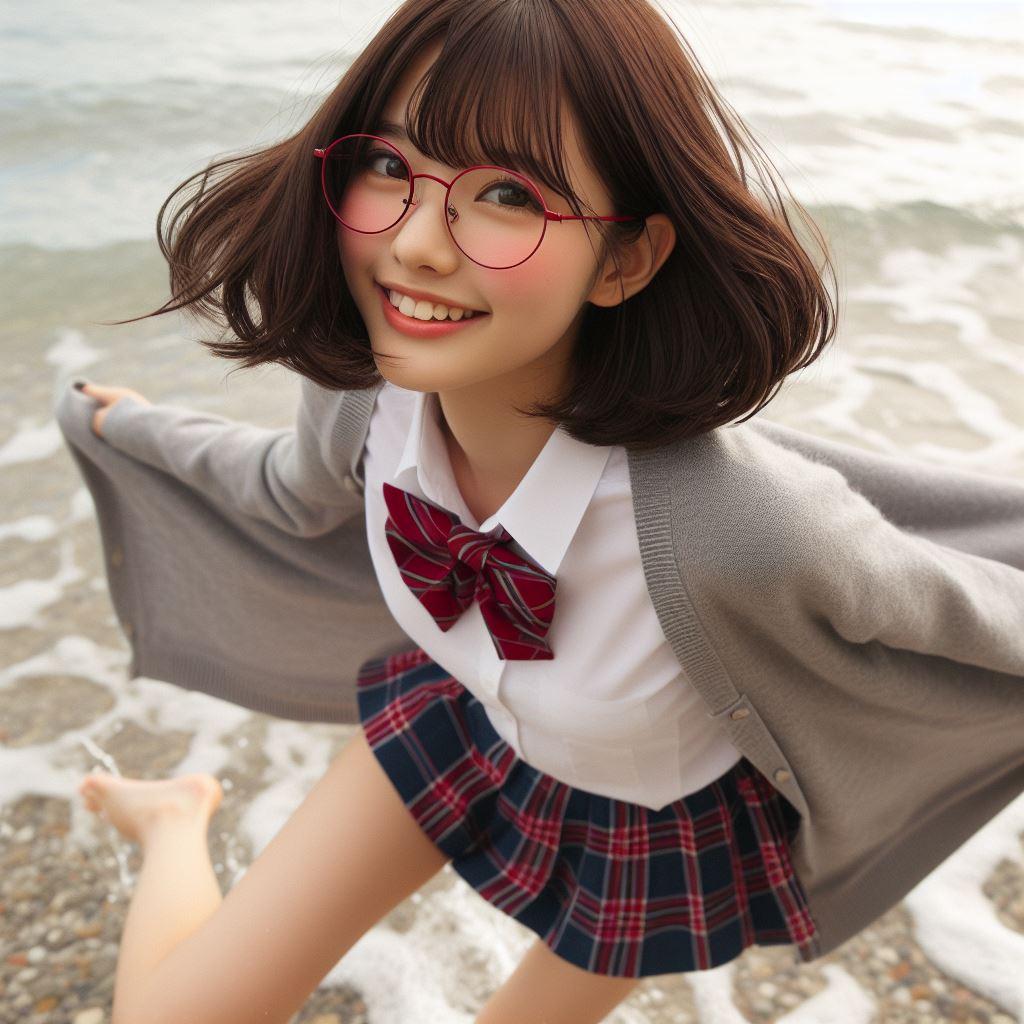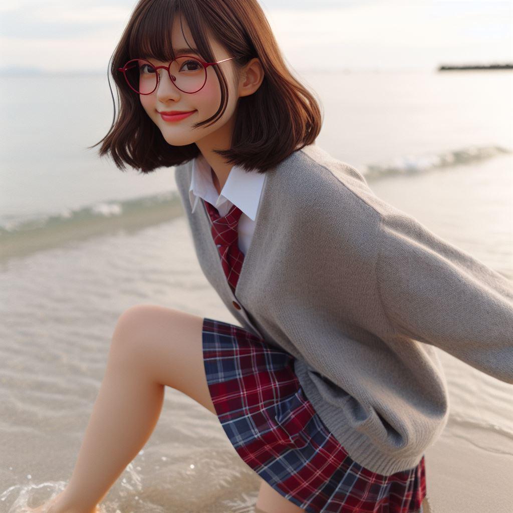 眼鏡女子 楓の波打ち際