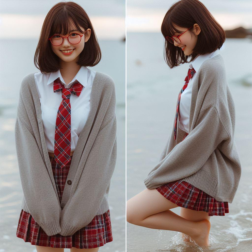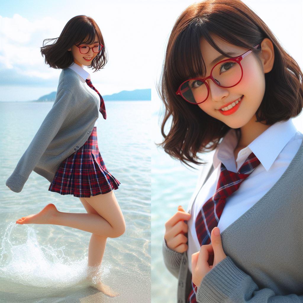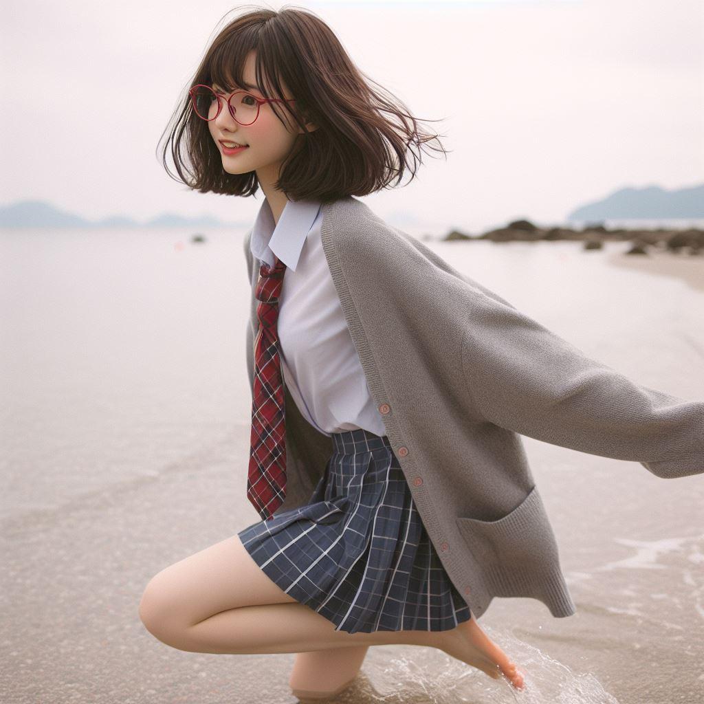眼鏡女子 楓の波打ち際