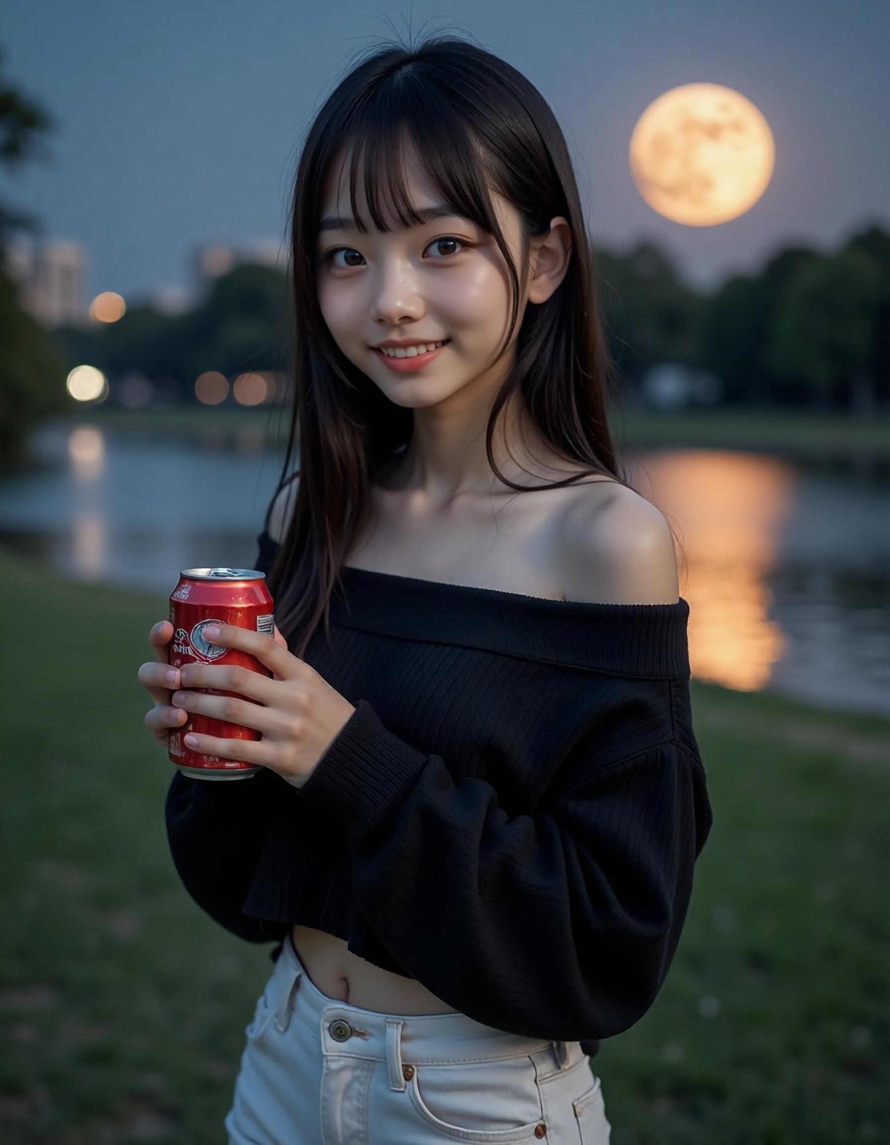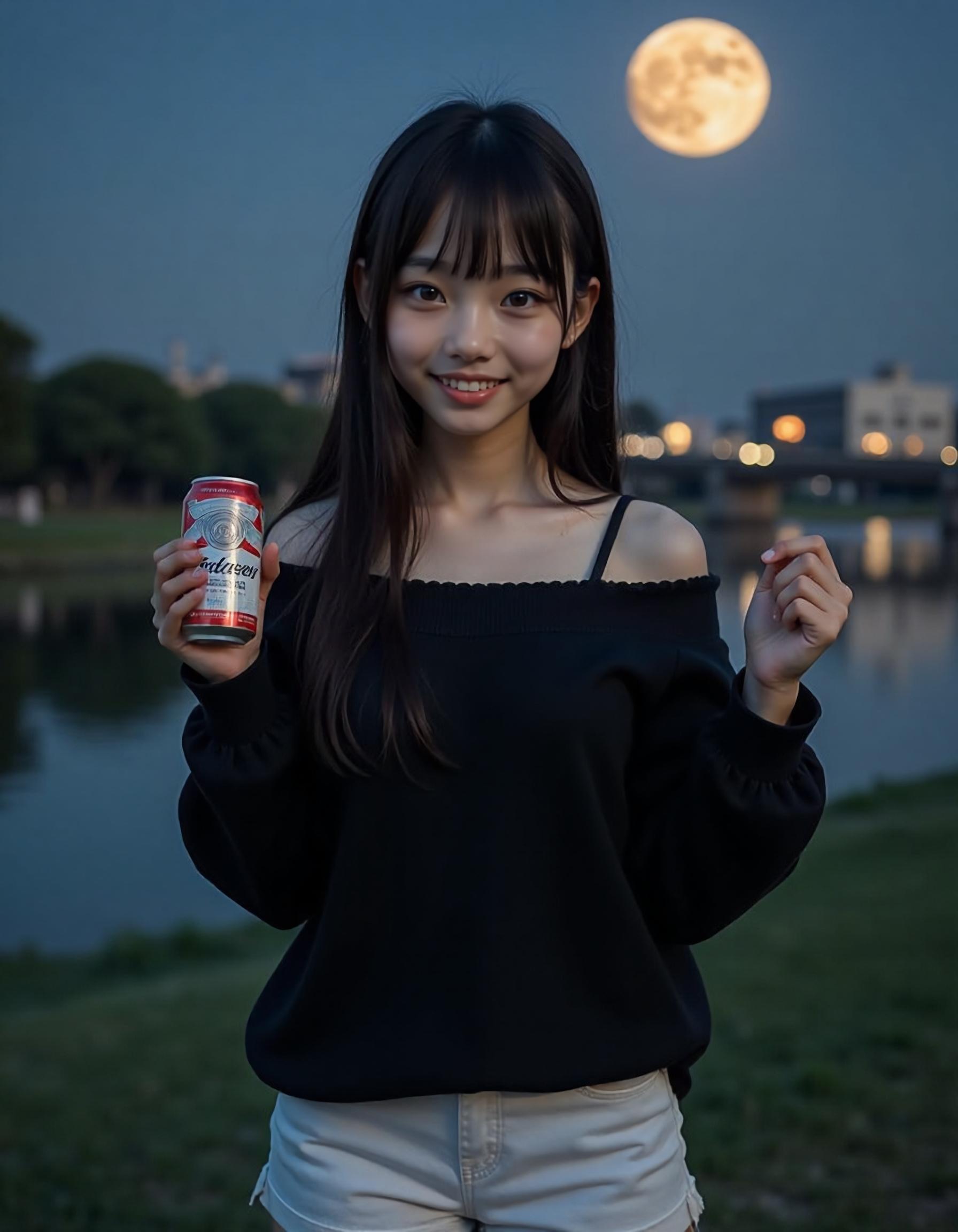 月とビール🍺バドワイザー初めて飲んだけど飲みやすい❓❓