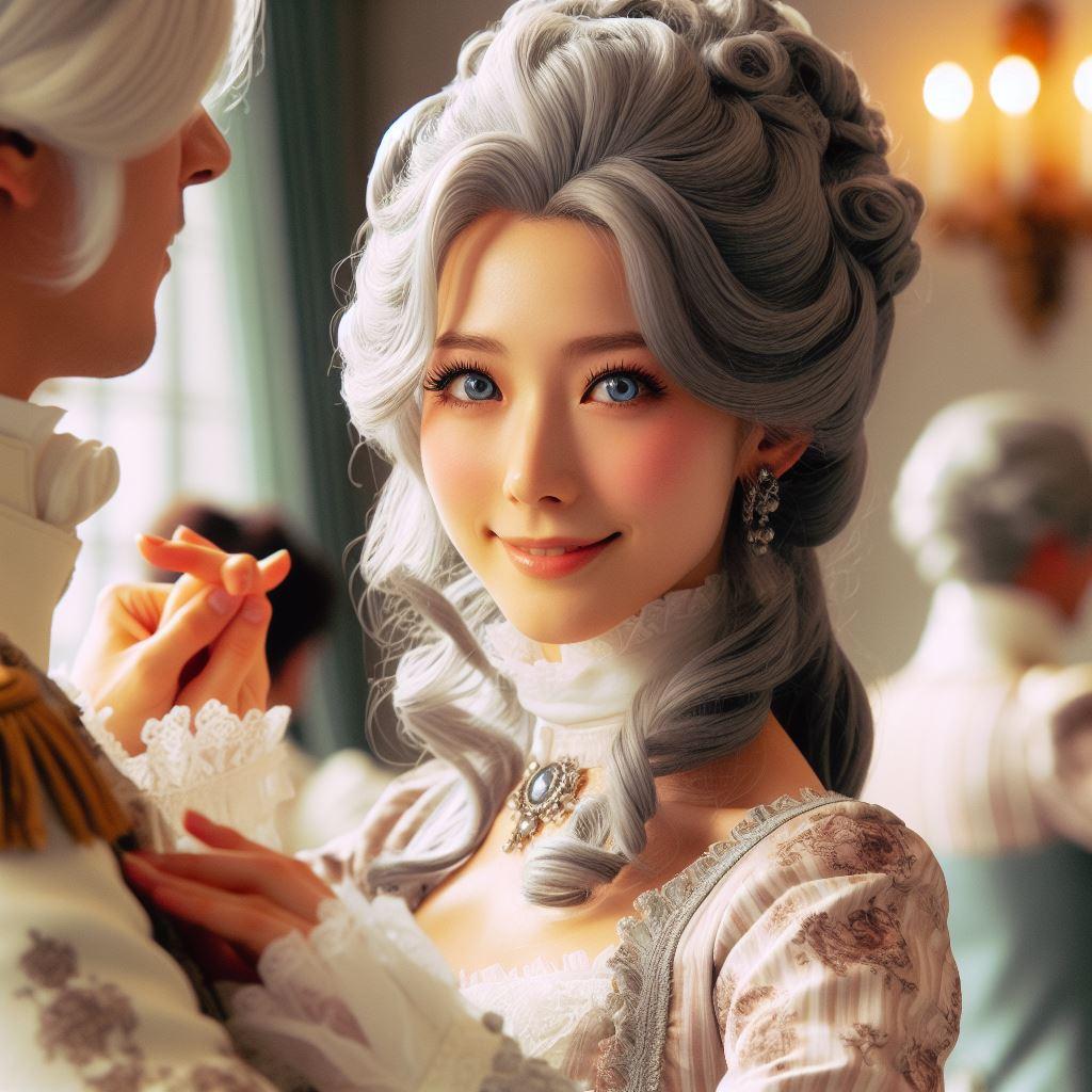 当時の社会では色をつけたカツラが流行っていたようです。帽子みたいな感覚ですかね?
