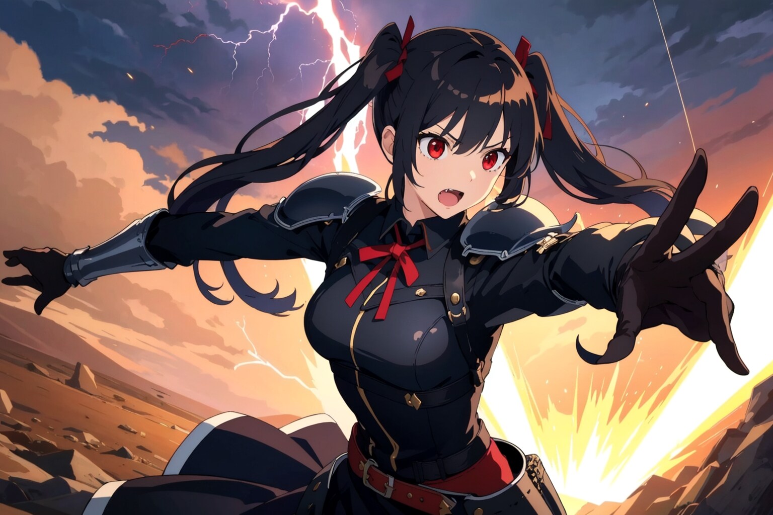 黒髪黒バトルドレス(雷鳴轟く戦場)_20231214