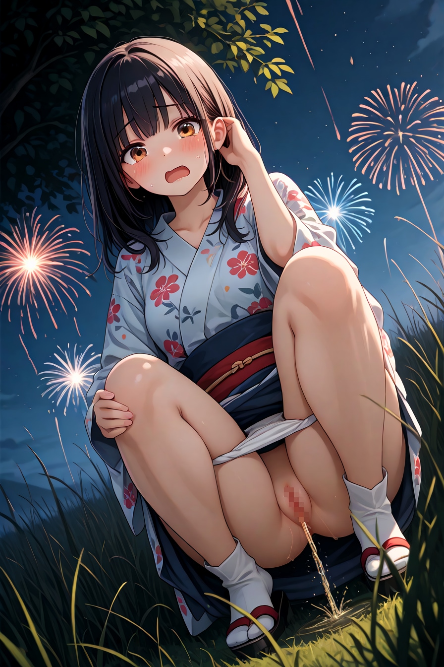 下着を下ろしさらけ出す秘部、人が来る前にと急いで放尿するも―