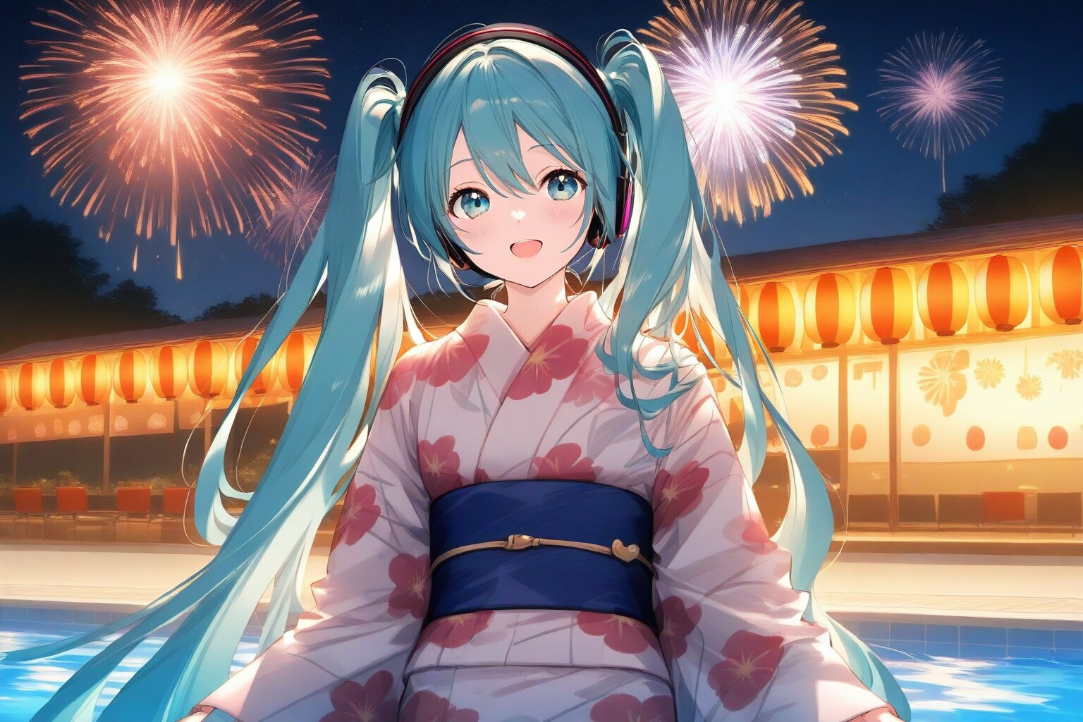 すみません、街のお祭り実行委員会に参加したマスターが、冗談で「そうだ!夜が暑いなら涼しい水辺で祭を開けば良いんだ!(ピコーン!)」と言ったばかりに、プールサイドで祭が開かれることになってしまいました。