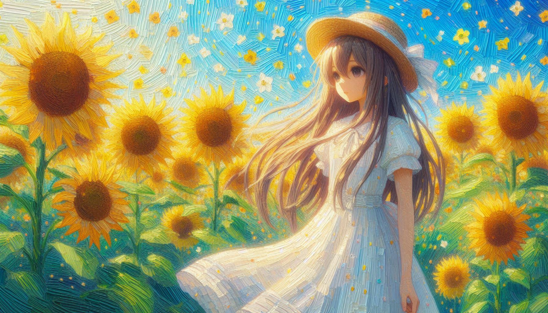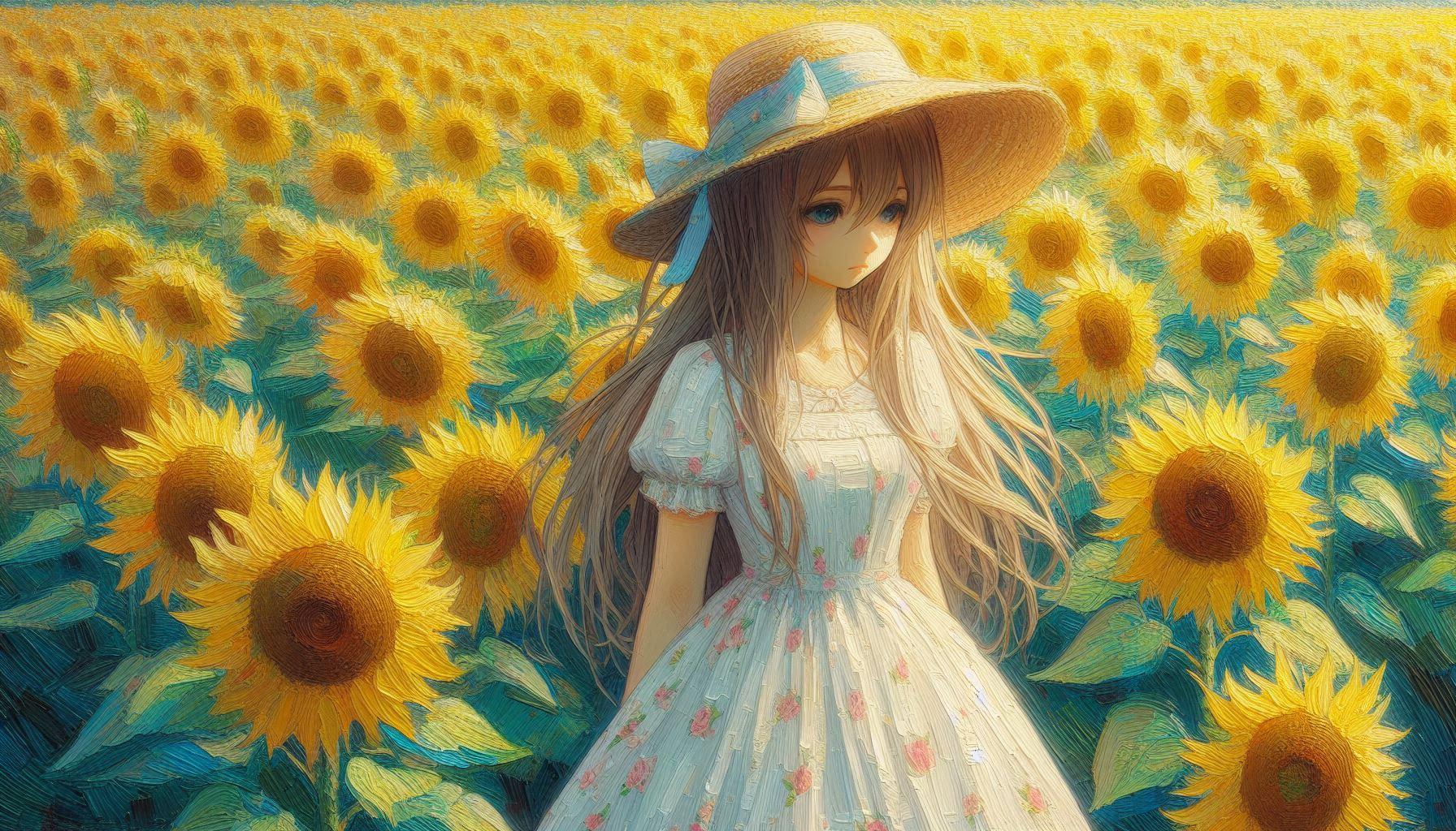 ゴッホと言えばひまわり……という事でひまわり畑をバックにw