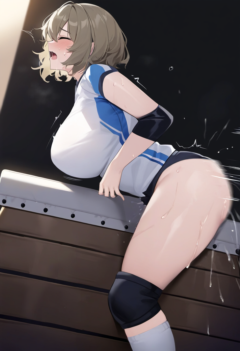 【5枚目 / バレーボール・がに股】girl humping volley ball, sit on volley ball with squat down