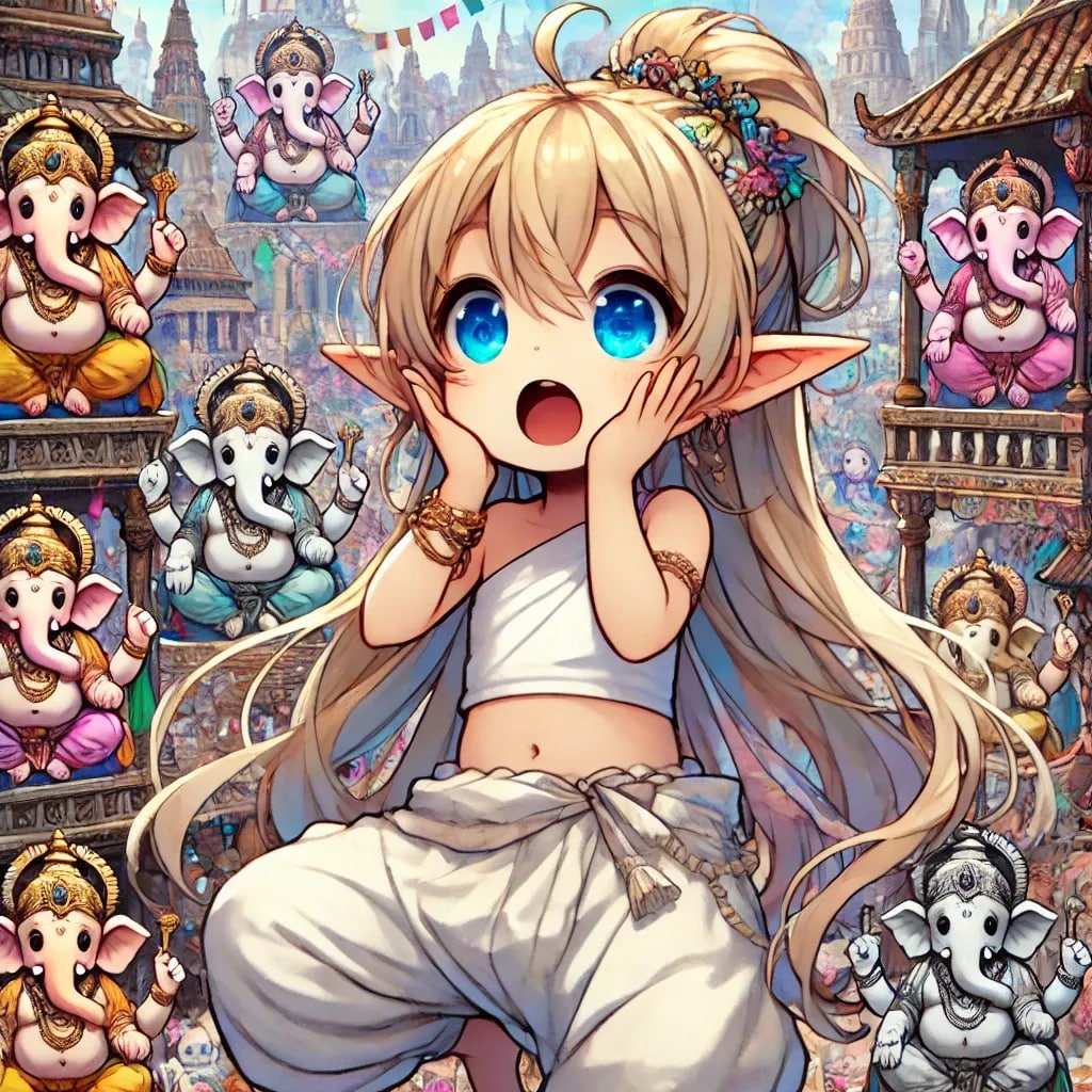 外へ出ると、街は二足歩行のカラフルなゾウだらけ。