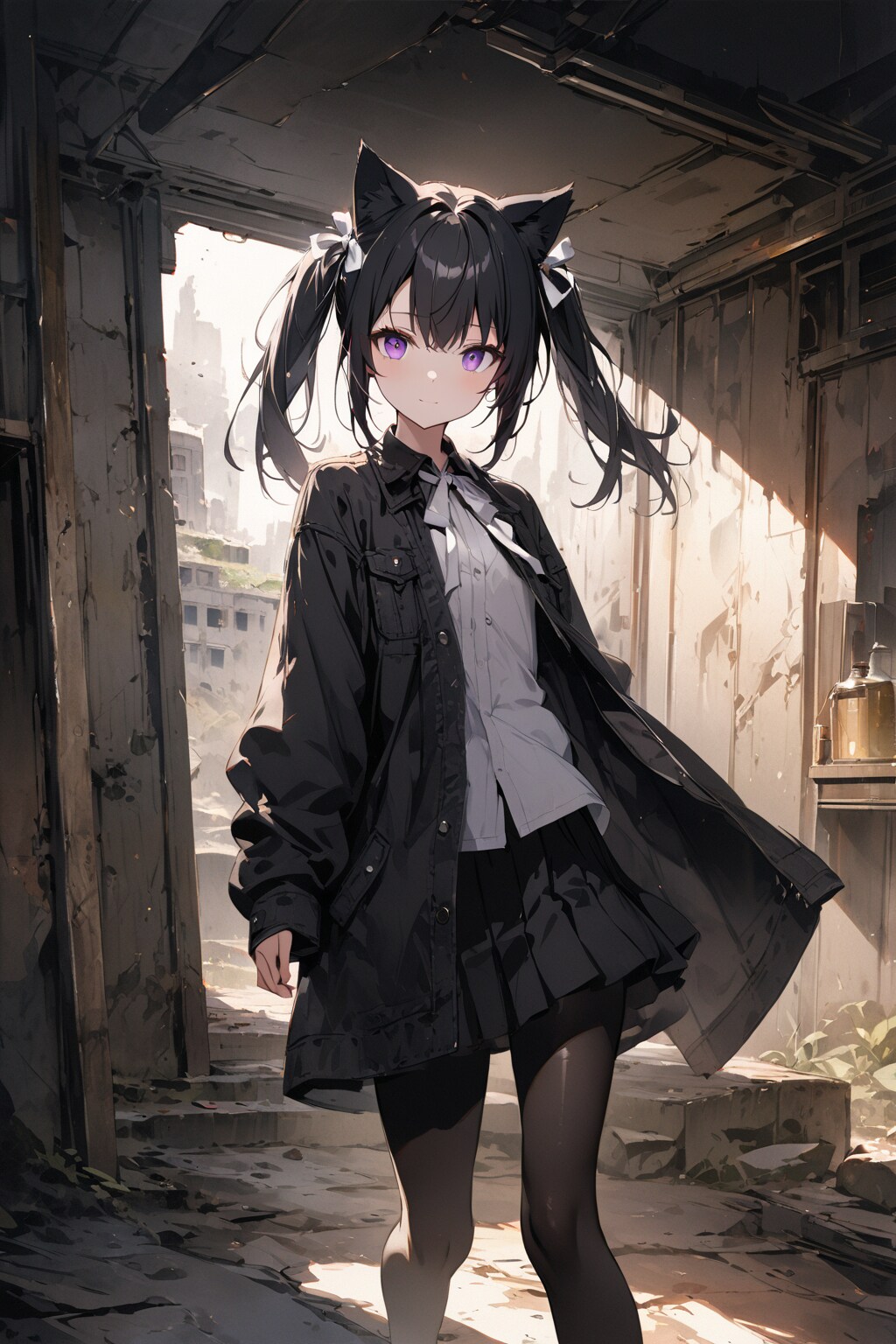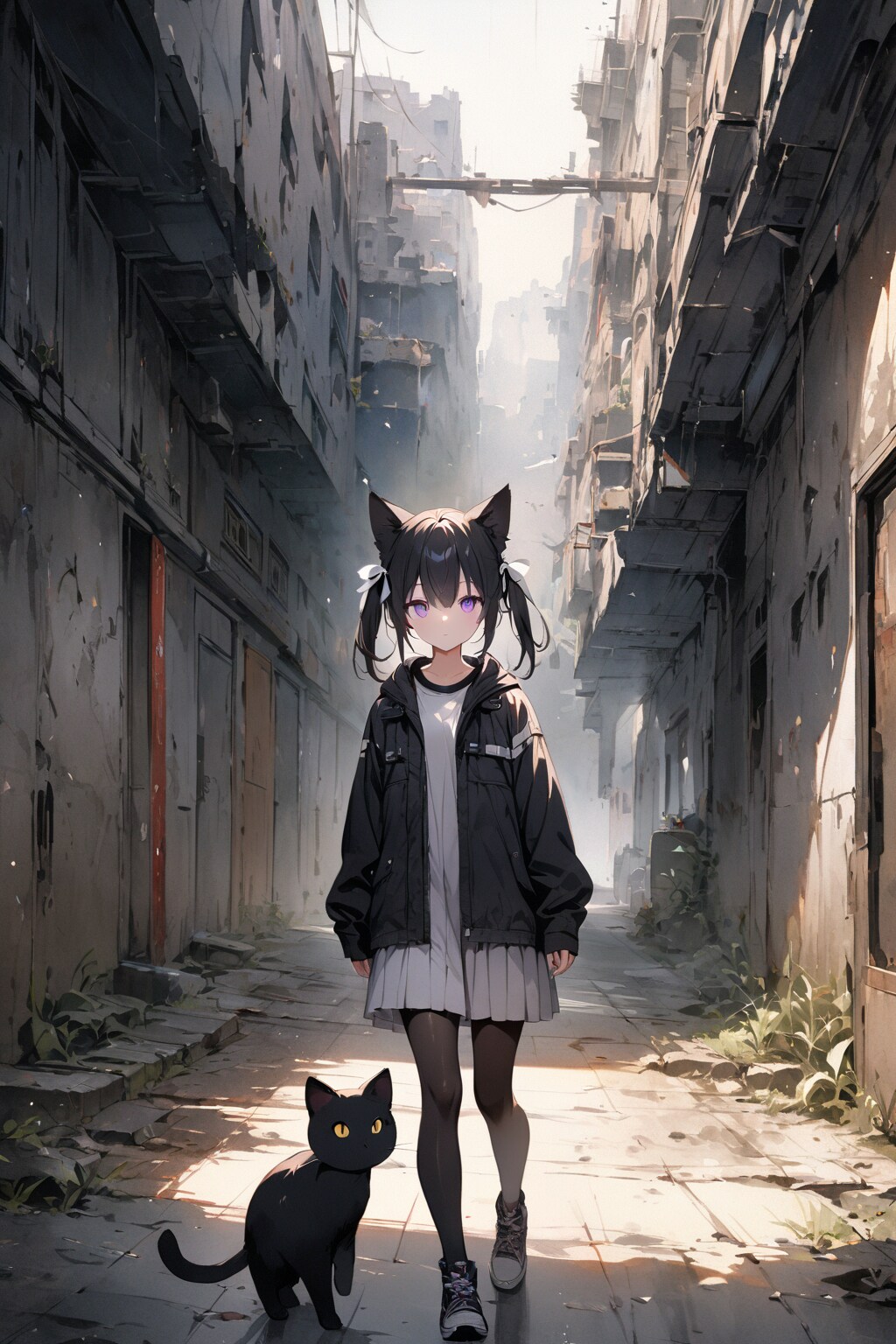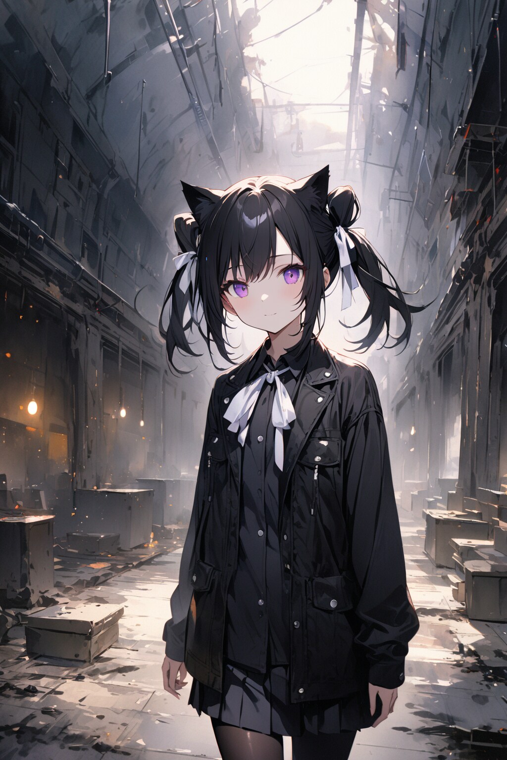 頑丈なブーツで地面を踏みしめながら、黒羽カペラは大洞窟の天井を見上げた。周囲を満たす人工灯に近い色をした不思議な紫の瞳、ツインテ―ルにまとめた黒髪を縛る白いリボン、ちょこんと立った猫耳。旅する黒猫といった風情の猫の獣人族の旅人。