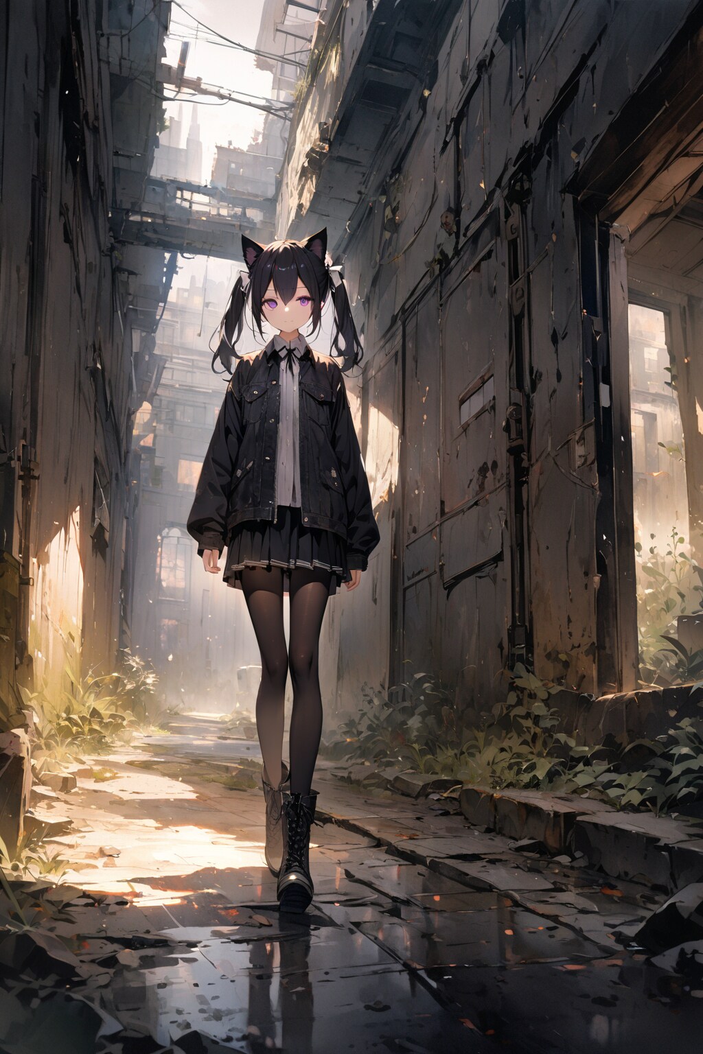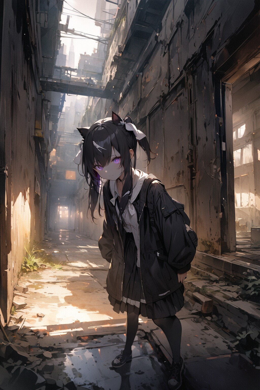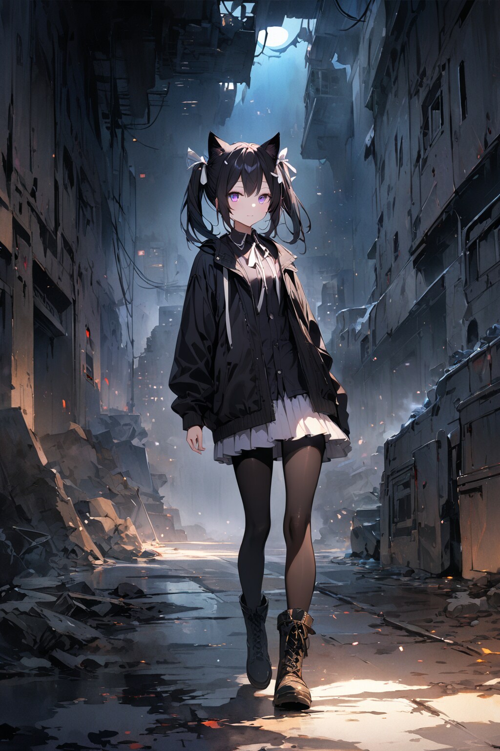 頑丈なブーツで地面を踏みしめながら、黒羽カペラは大洞窟の天井を見上げた。周囲を満たす人工灯に近い色をした不思議な紫の瞳、ツインテ―ルにまとめた黒髪を縛る白いリボン、ちょこんと立った猫耳。旅する黒猫といった風情の猫の獣人族の旅人。