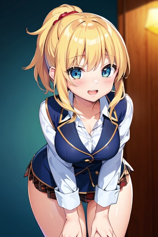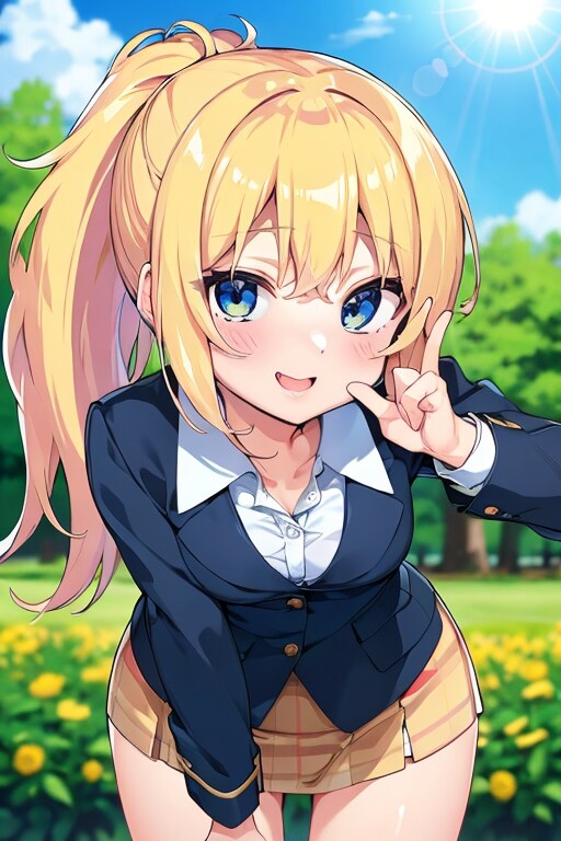 女の子はいつもの黒髪ポニーの茶瞳っ娘(お目々奇麗Ver・金髪髪染め、青カラコン(苦しい))