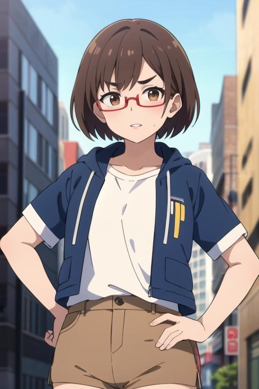 前回はシンプルな服装から、青いジャケットを着させてボーイッシュな感じにしてみました。OPAL以外にも使えるかなと若葉しずくが初めて出てきた絵のプロンプトとシード値を試してみたところうまくいってよかったです。ツンなところにデレを見せるのにこだわりました。