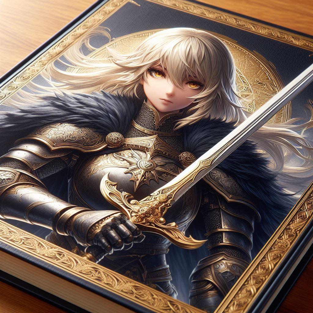 本の表紙風ブロンドの女騎士さん