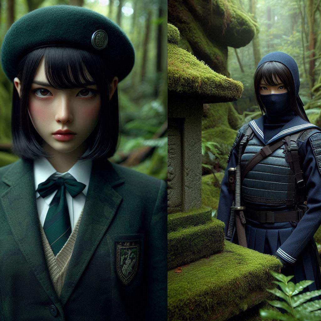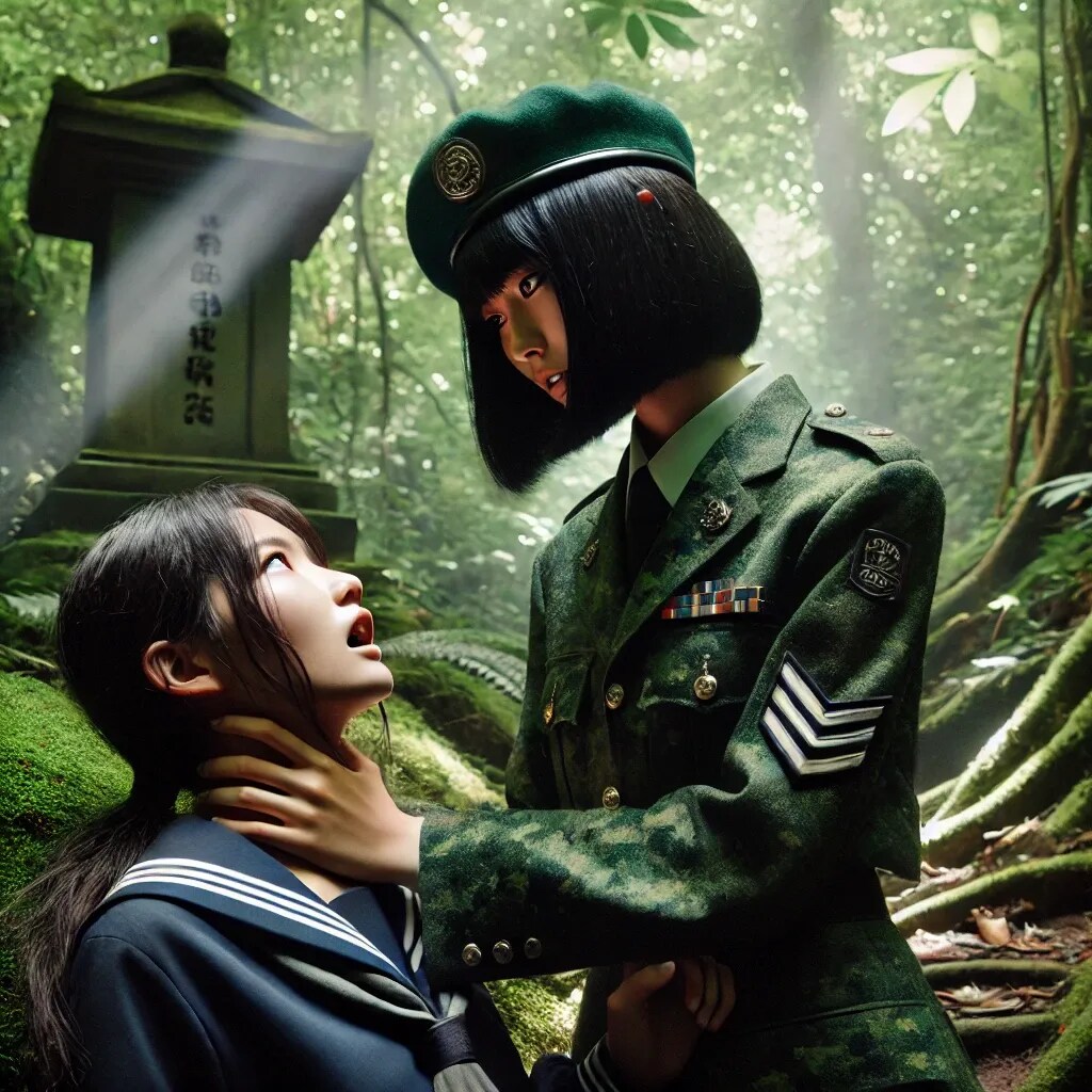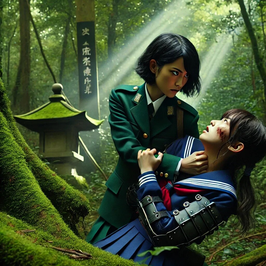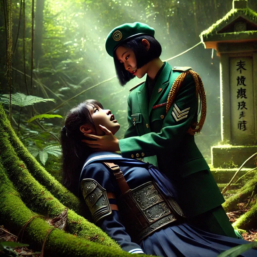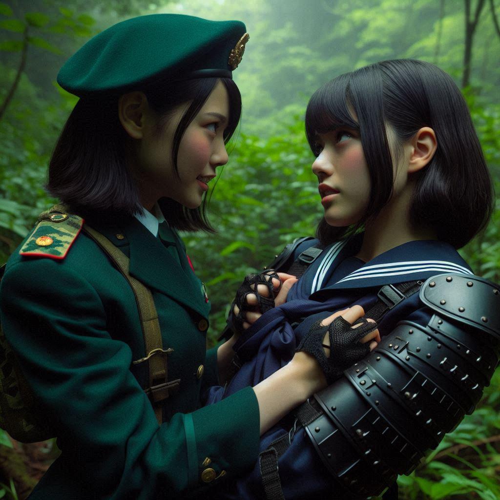 密林に潜む侍JKを捕らえた武装JKがニヤリと笑った。