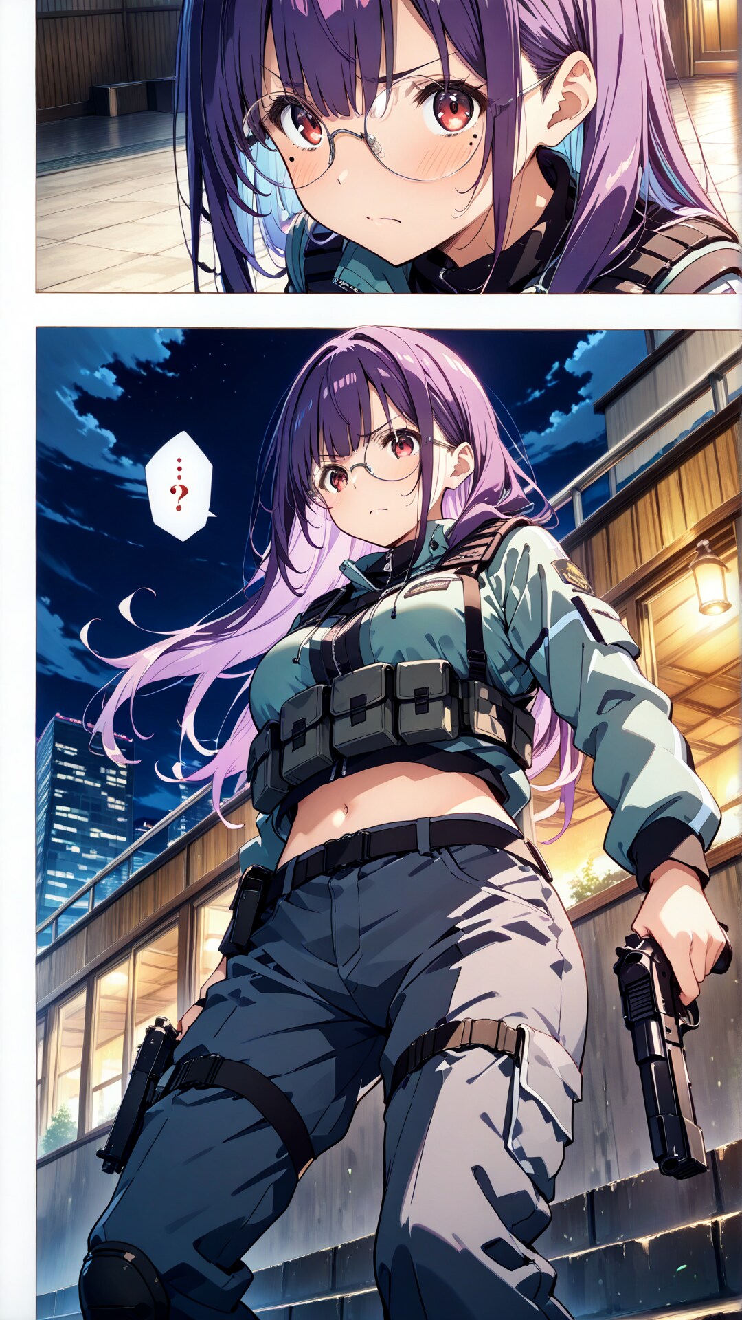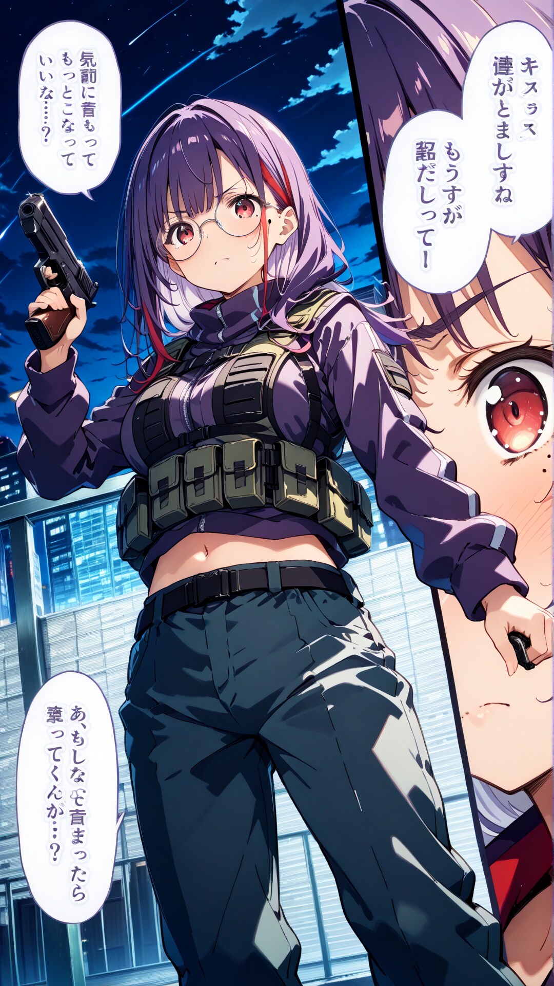 コマ割は指定なしだと単調だったけどout of frame,feet out of frame,dynamic angle,あたりを入れたら多少改善された気がする、コマ割制御できるプロンプト探すかなあ