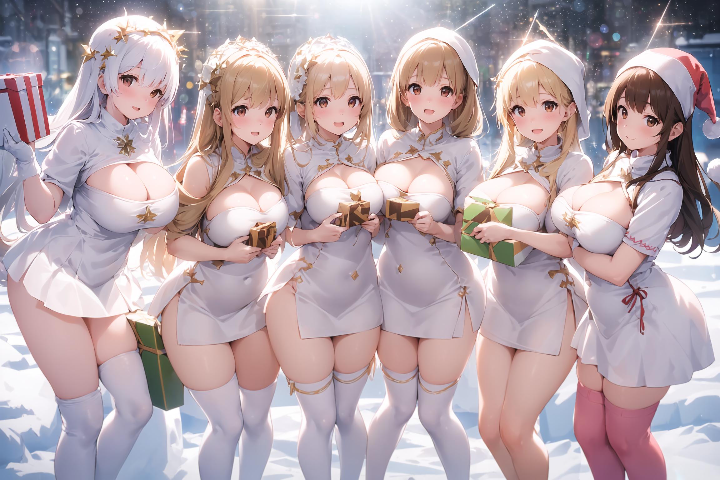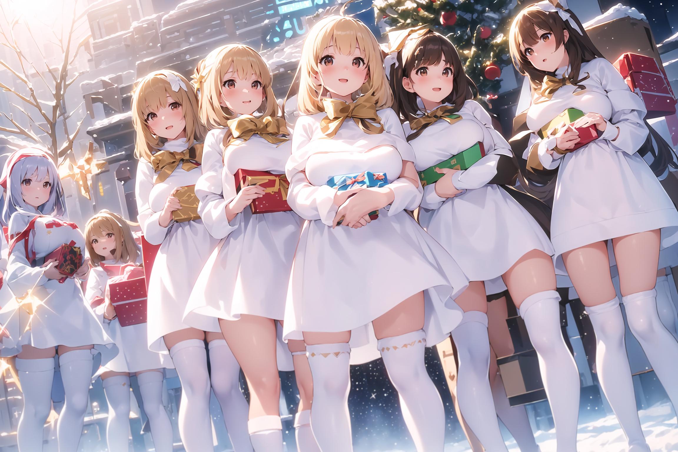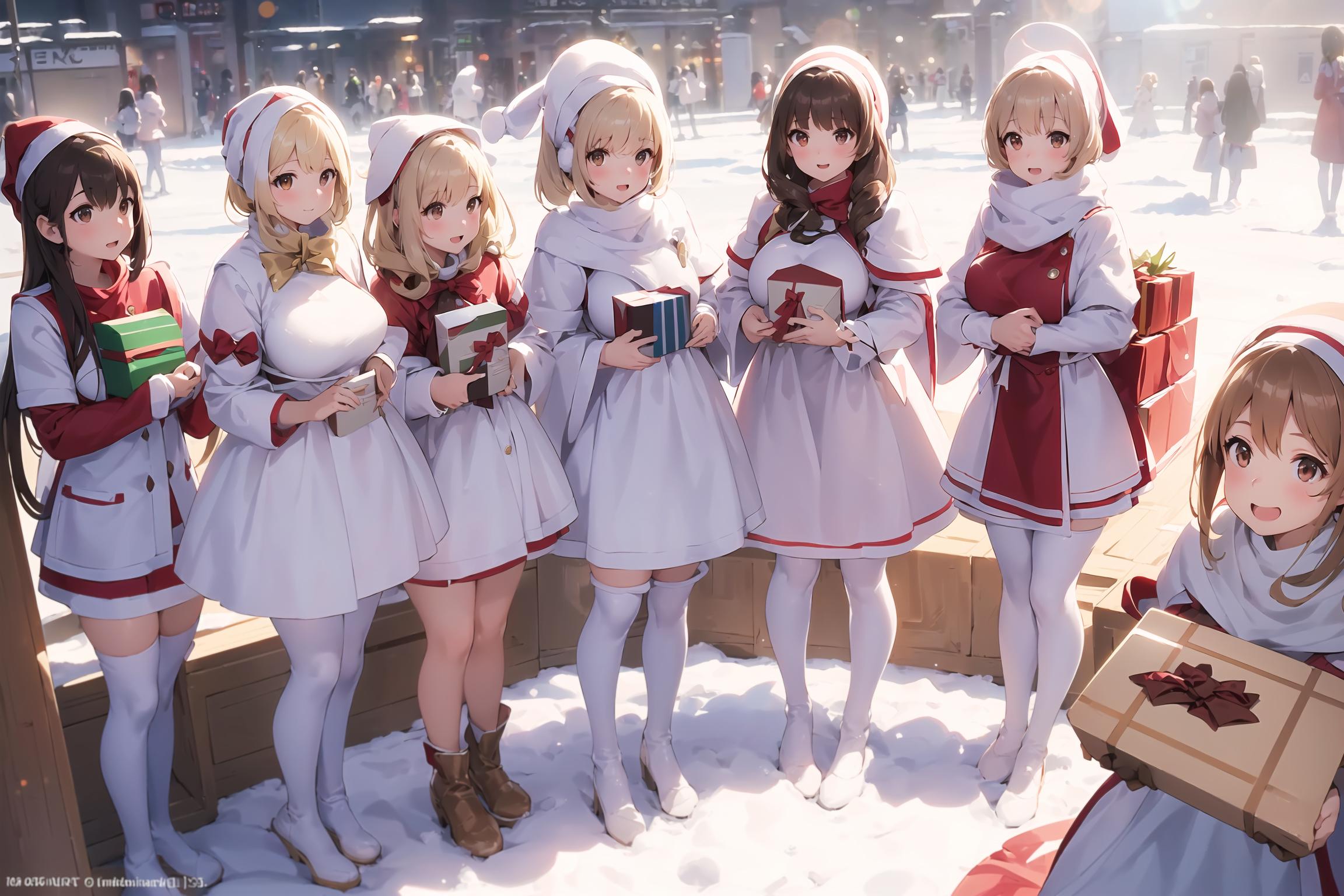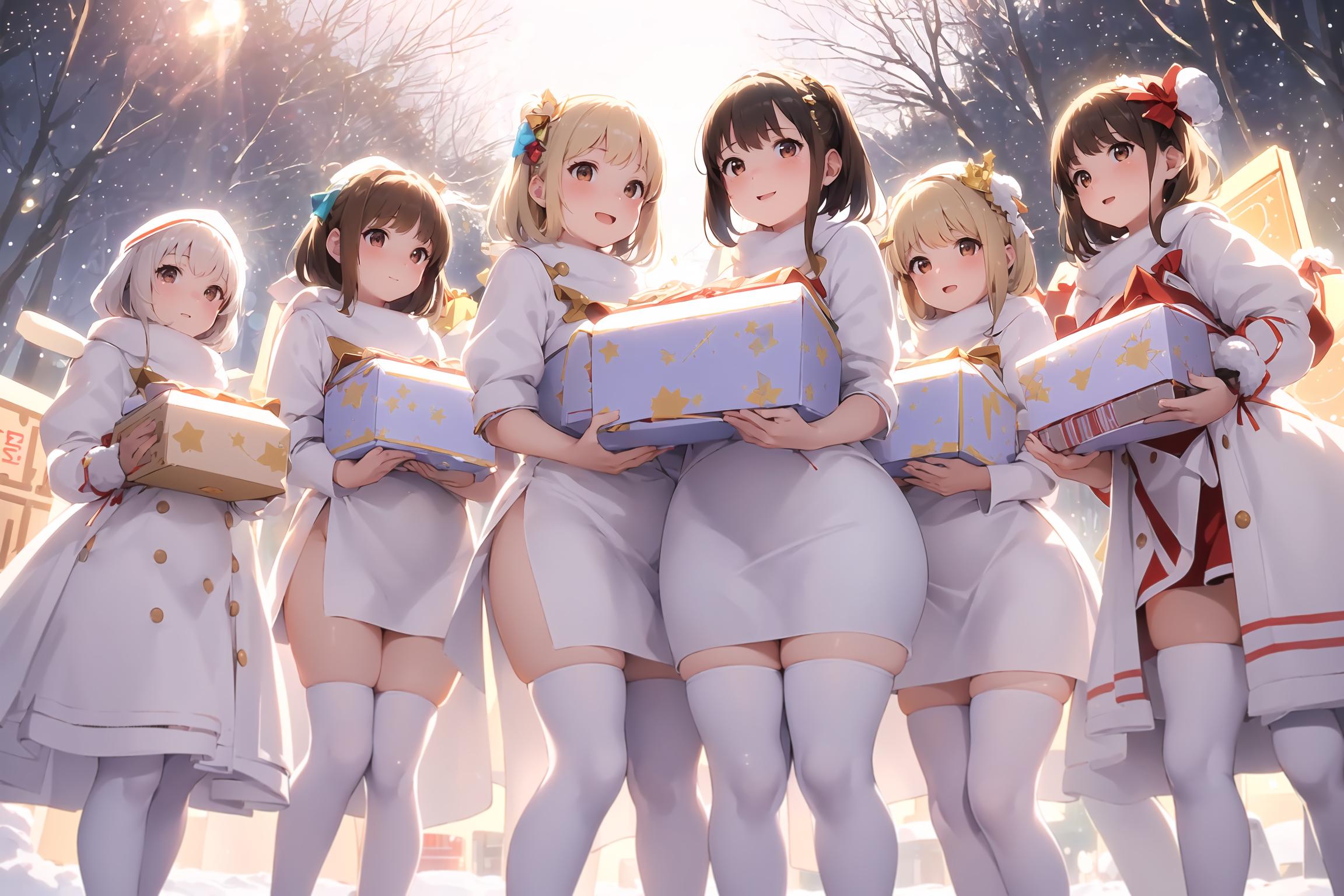 プレゼントは通常プロンプトでは出しづらいですのでarte_l様の「large present」LoRAをお借りしました。
