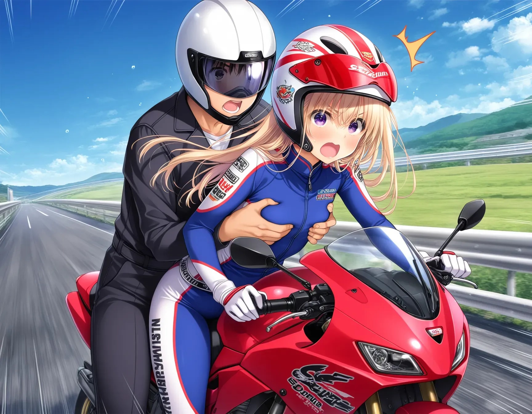「飛ばすから、しっかりつかまって・・・ってどこ触ってんのよ!」 「えっ? あっ!? ゴメン!」