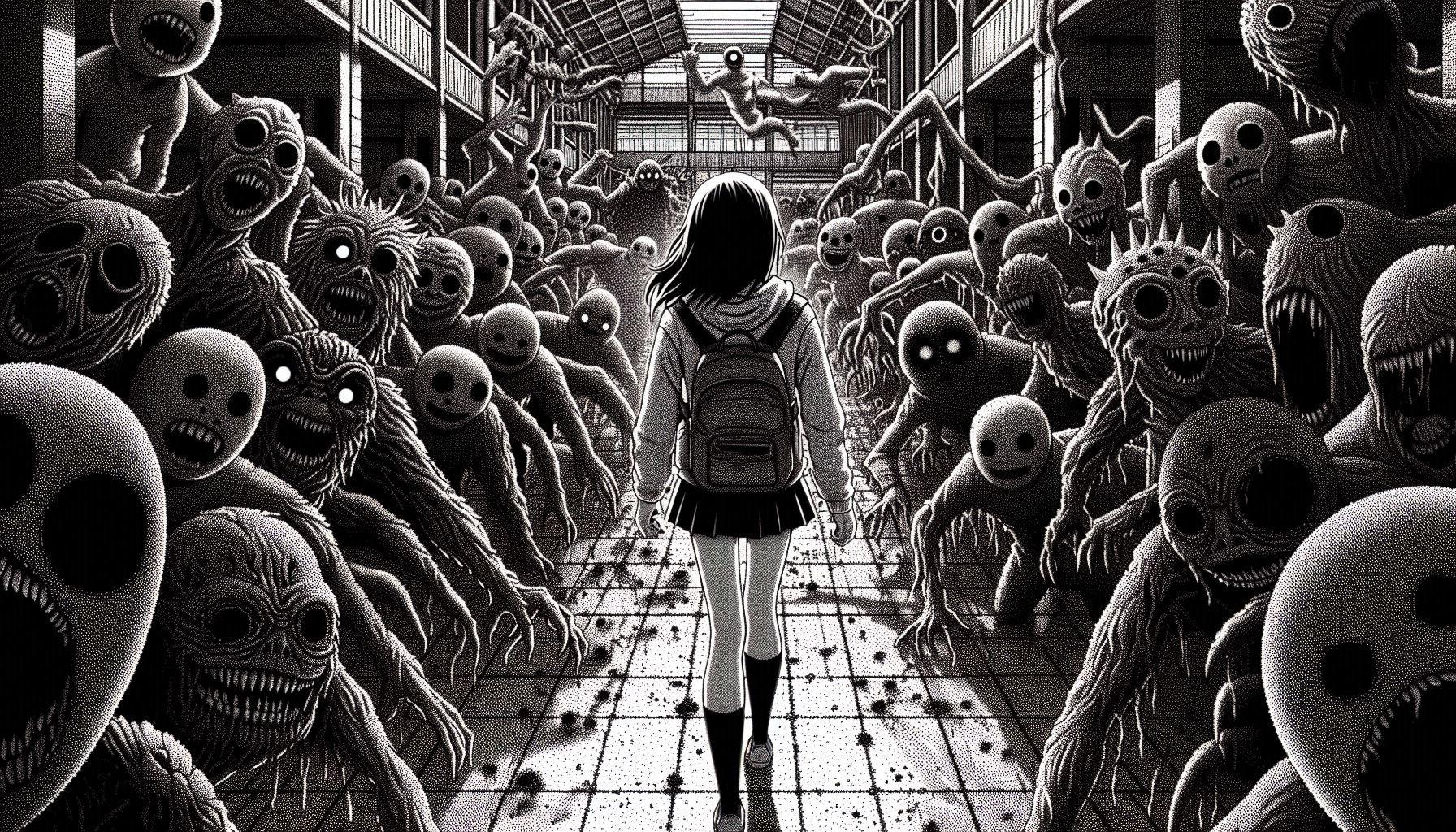 精密ドットホラーゲーム風?イラスト②(更なる精密さを求めたらドット絵というより点画みたくなっちゃった💦)