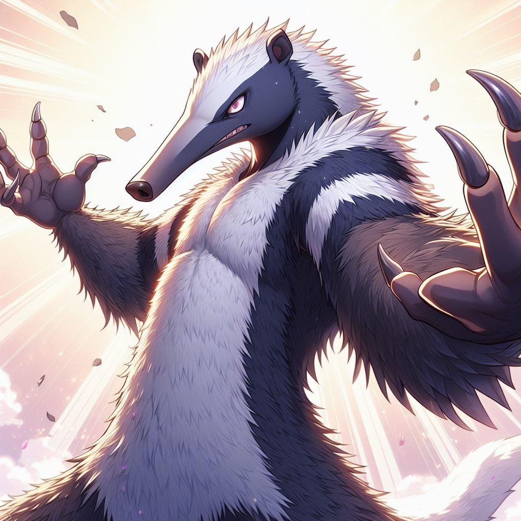 コアリクイは敵に出会うと立ち上がって体を大きく見せようと両手(前足)を広げて威嚇します