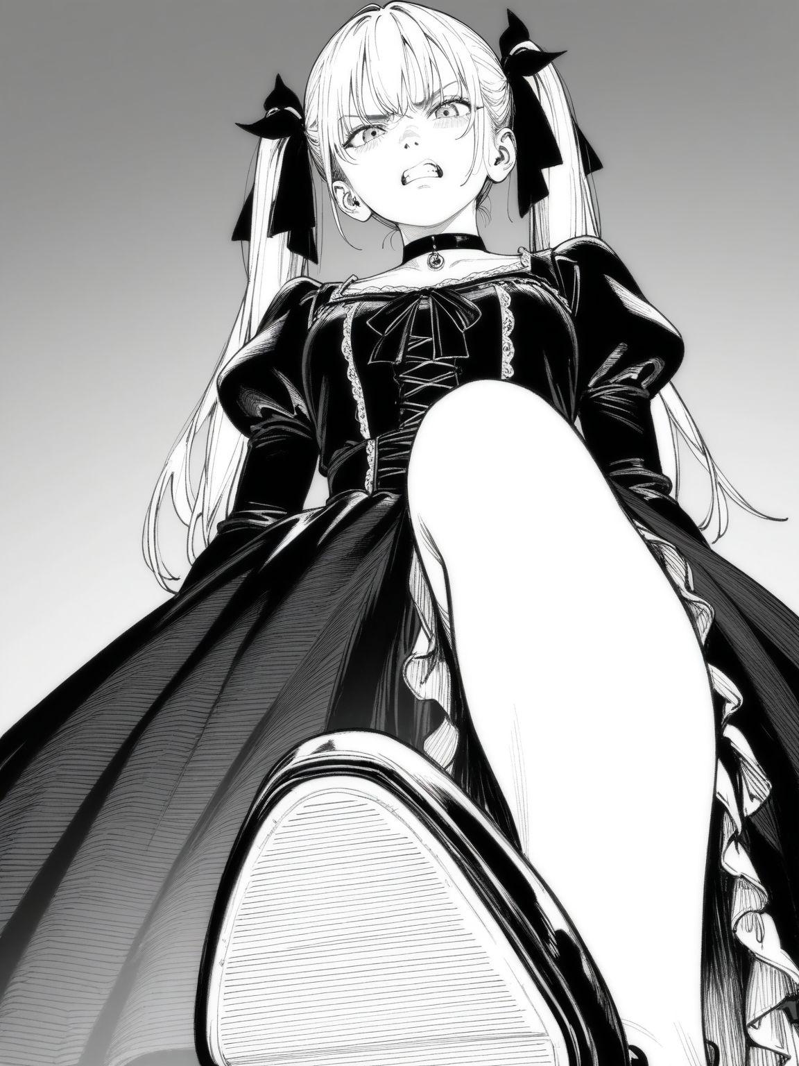 ツインテゴシックちゃんに罵倒されながら踏まれたい人向けイラスト