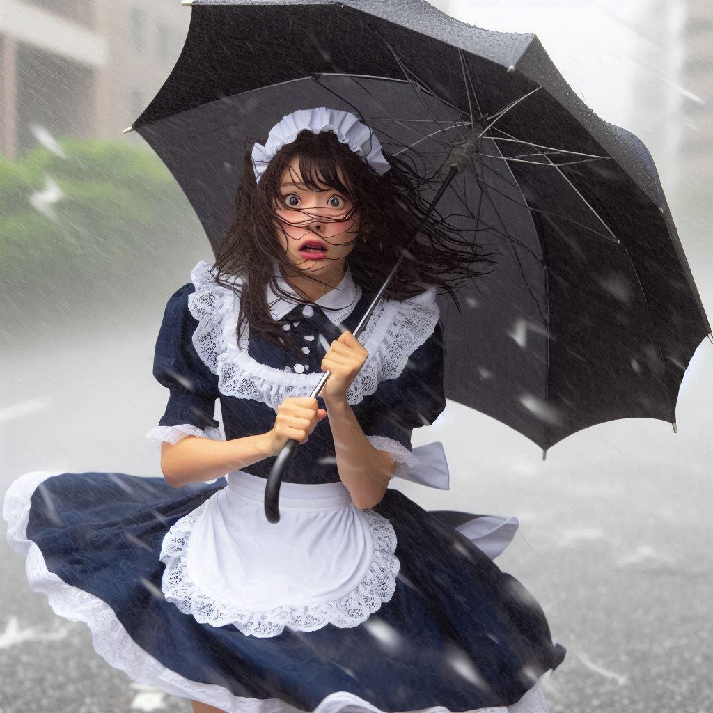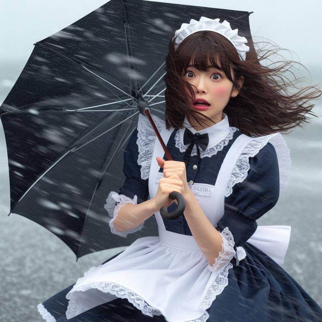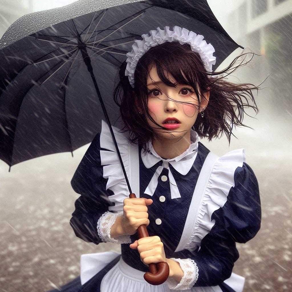 「台風の中おつかいに出されるメイド23号」が2024年8月17日のAIフォトデイリーランキング49位に入りました!🎉