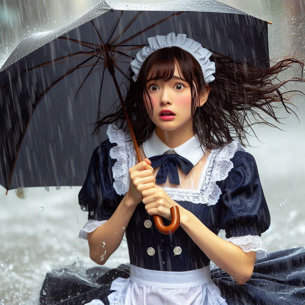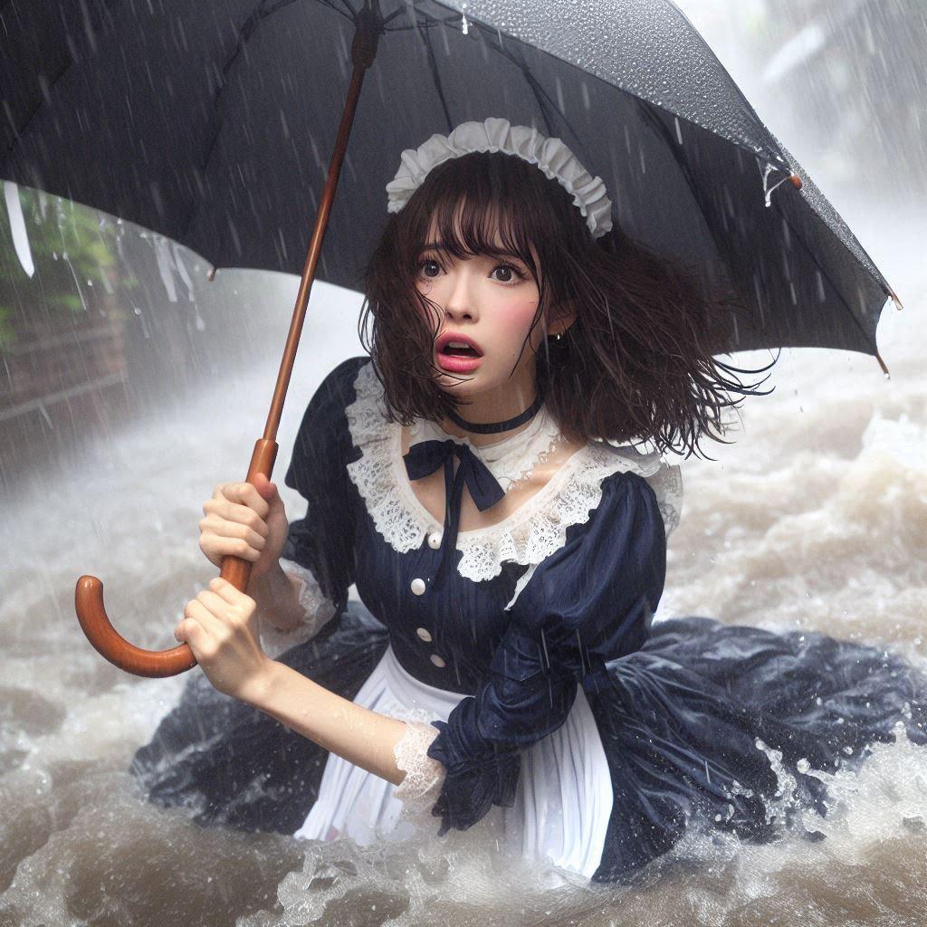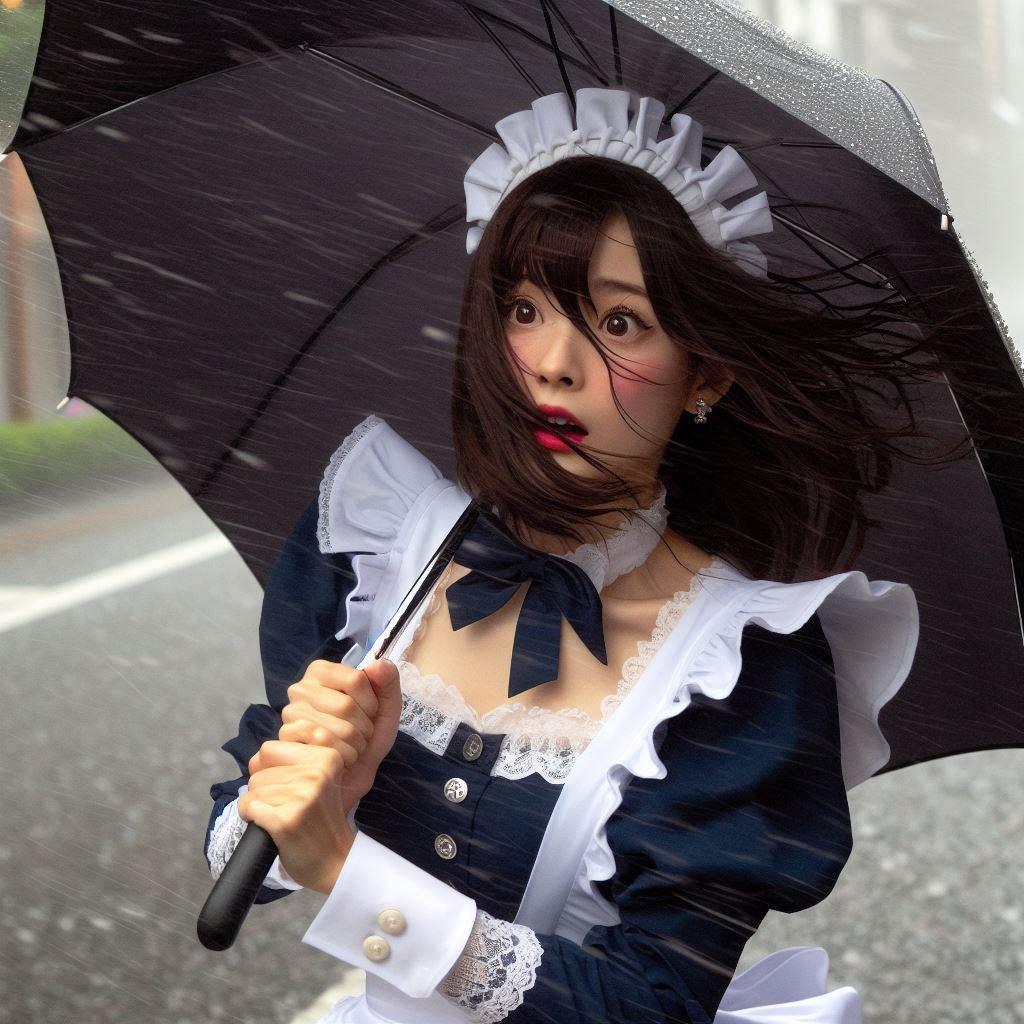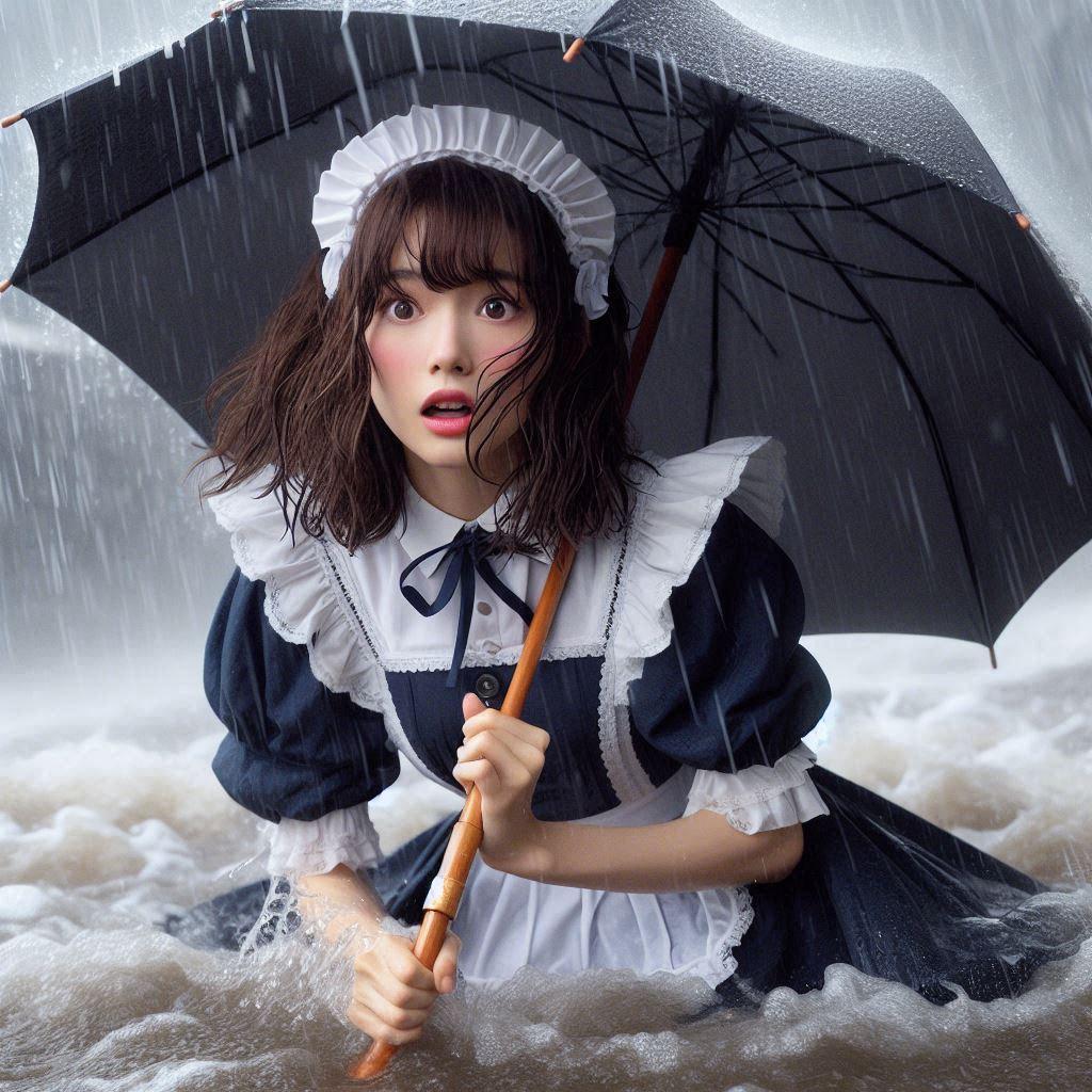 「台風の中おつかいに出されるメイド23号」が2024年8月17日のAIフォトデイリーランキング49位に入りました!🎉