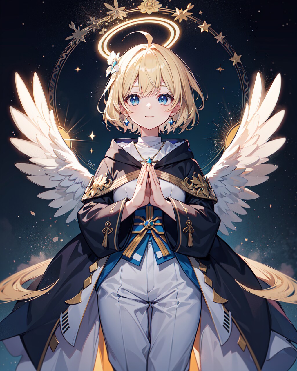 祈りの魔法効果で輝く天使の姿なシスター