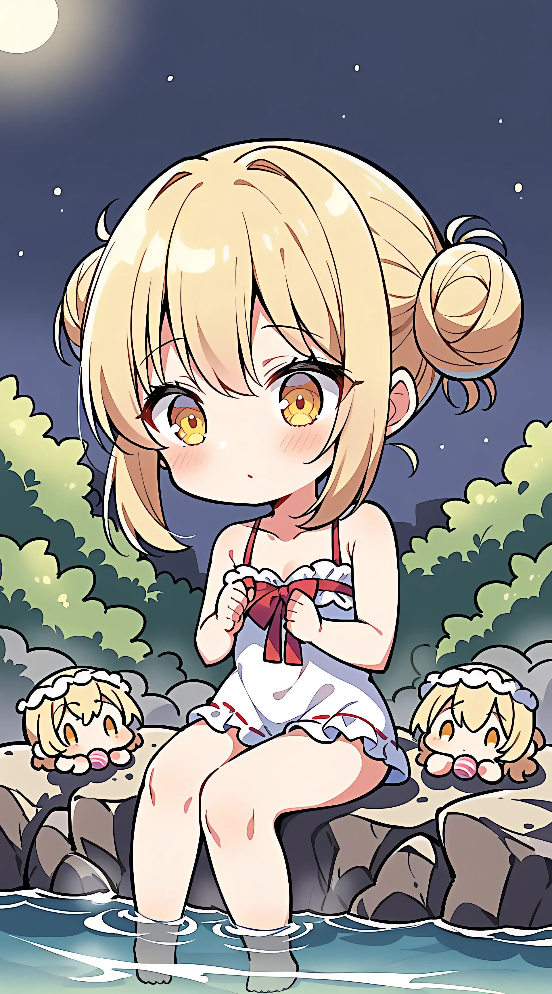 温泉が思いのほか熱かったらとりあえず足だけ浸かるよね(温泉に水着は駄目?残念!これは入浴着でした~by本日のお世話係のメイド)