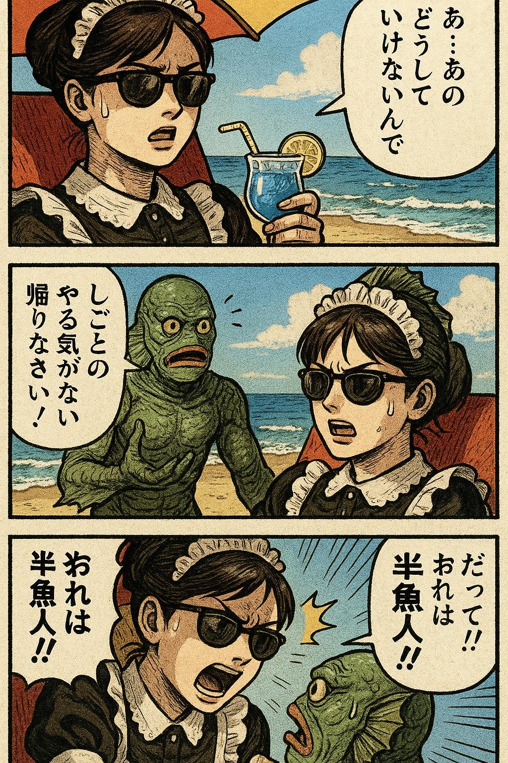 休暇を貰ってバカンスに来たメイドさんが半魚人に絡まれるという自分でも意味が分からない話を始めた結果