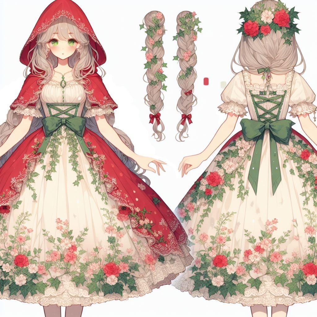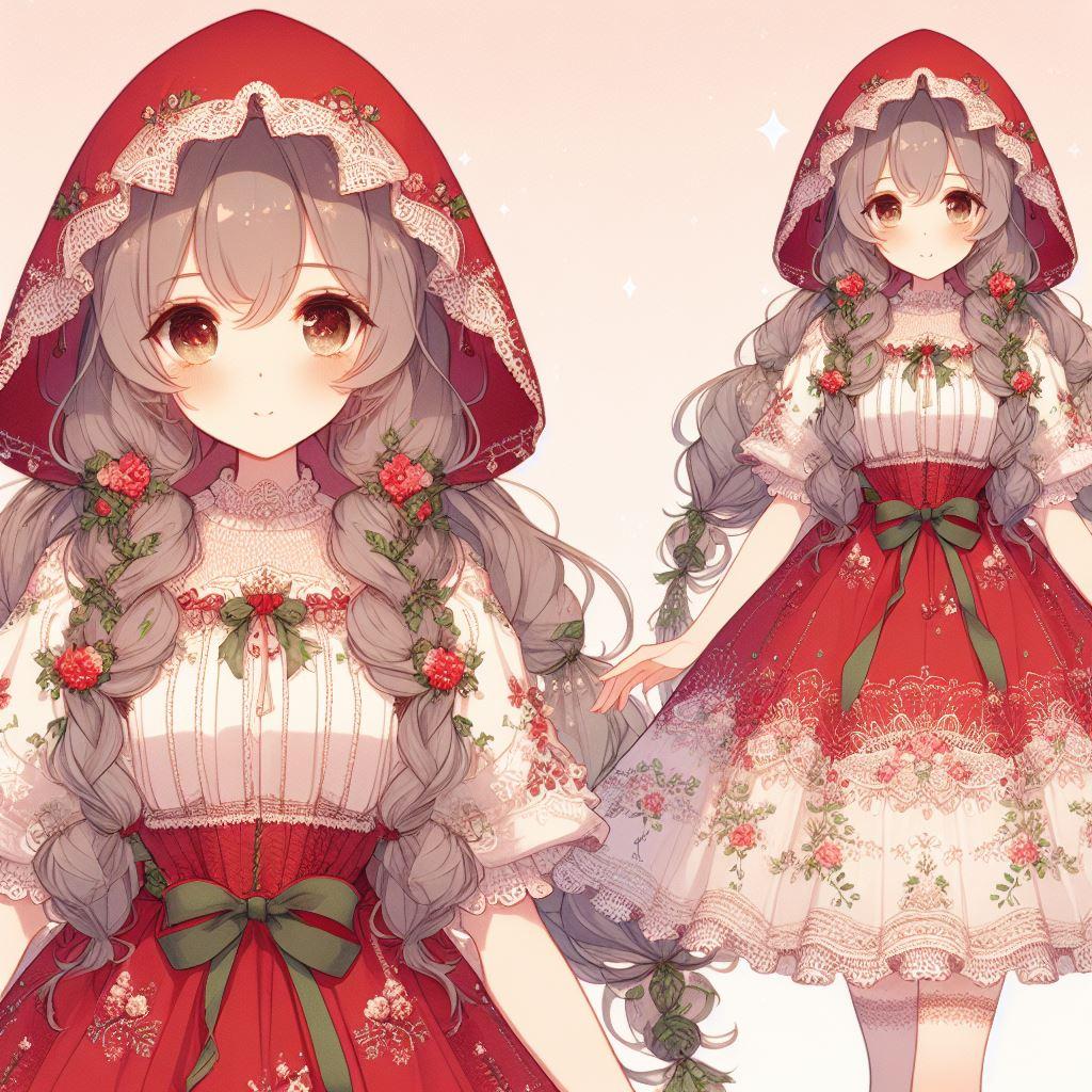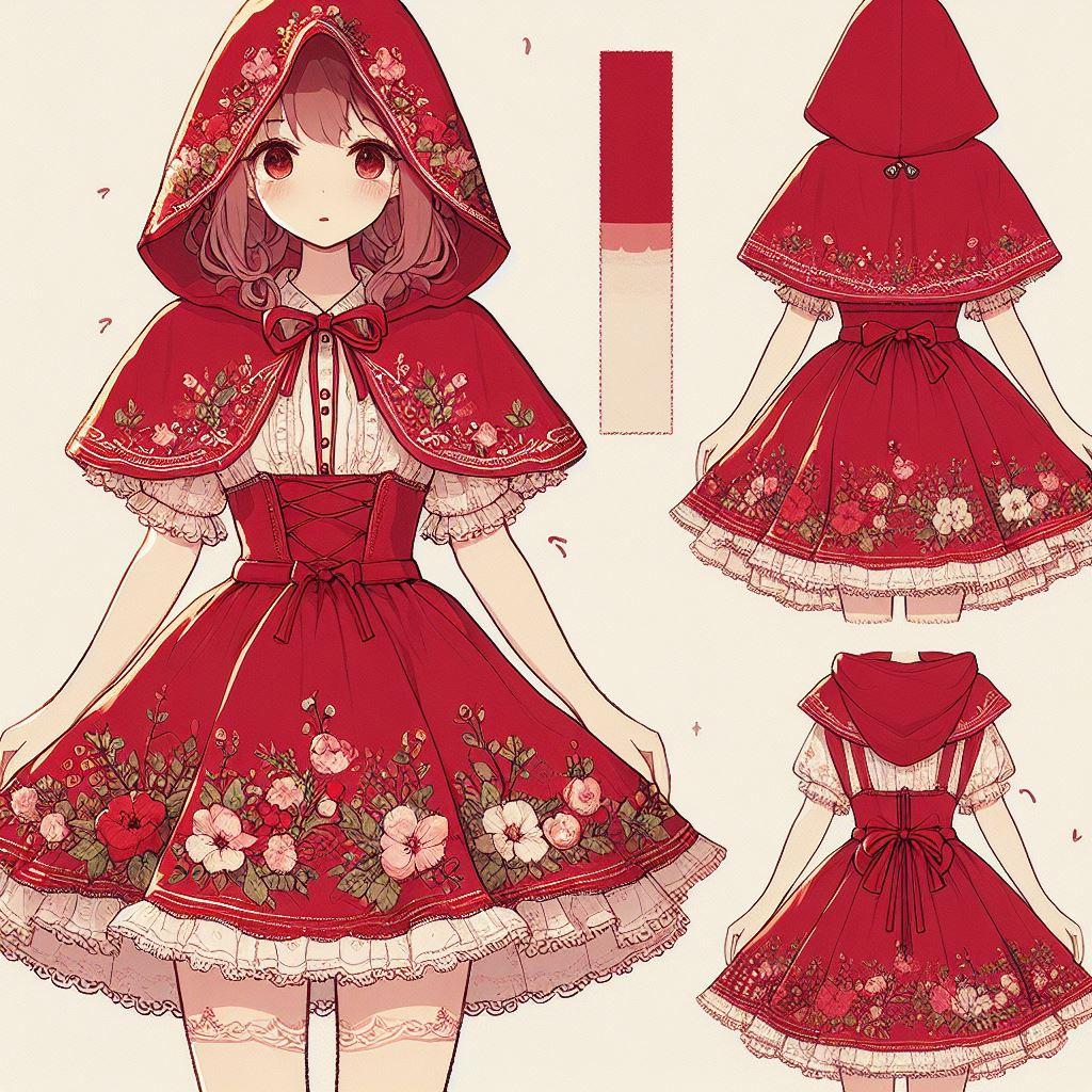 赤ずきんモチーフのワンピースドレス第四弾はシンプルに「可愛い」「小鳥のさえずりや木漏れ日がさす森の少女」です。